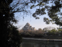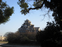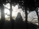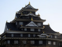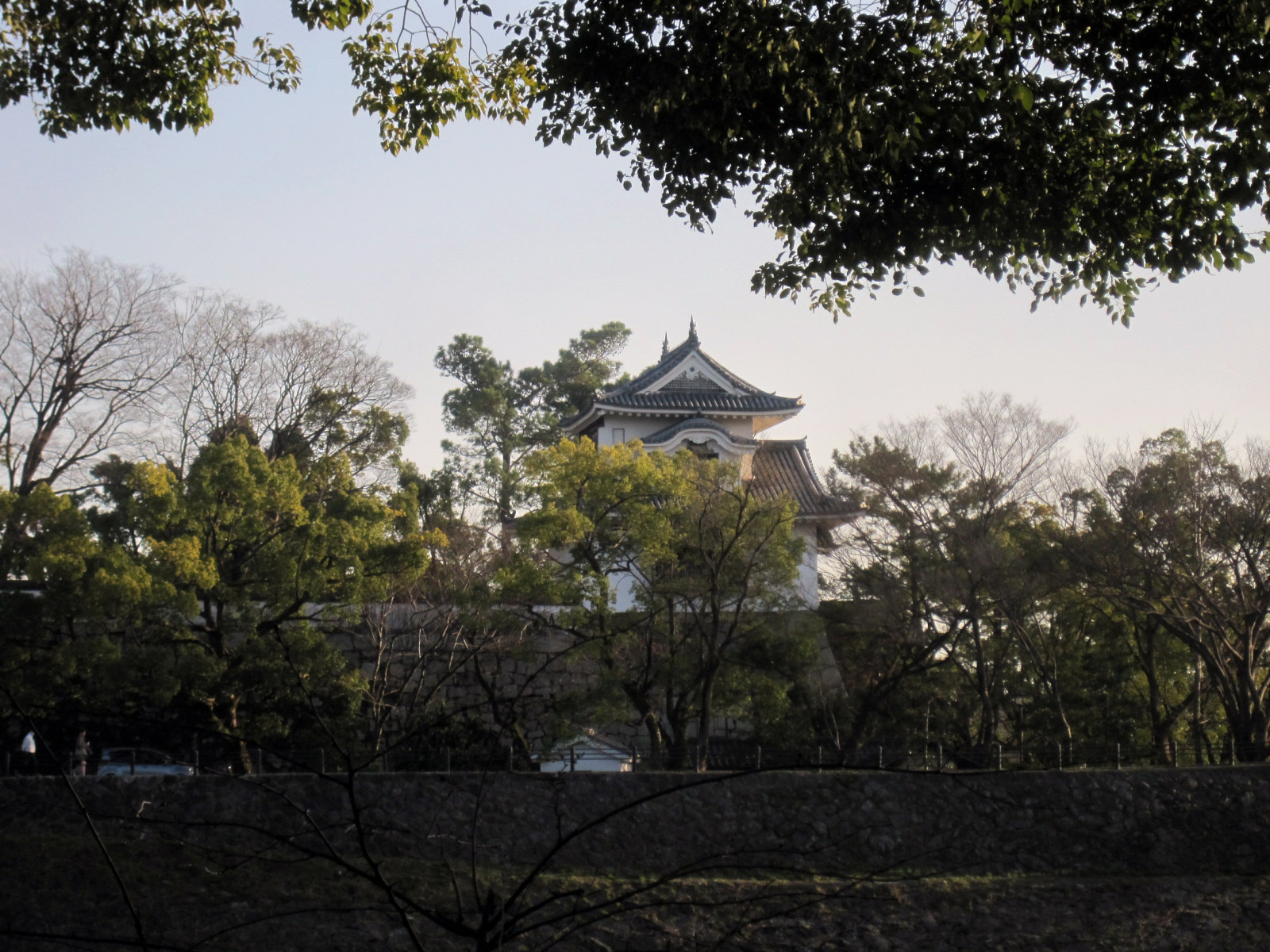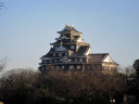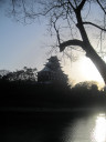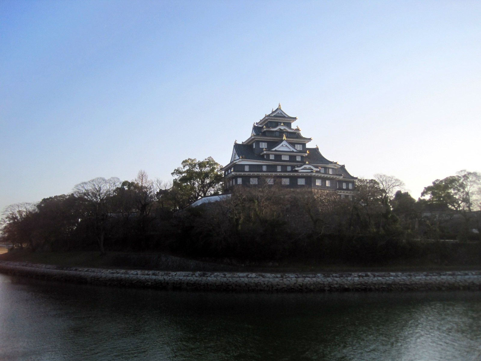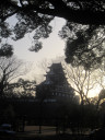 さて,曲がって・・・夕陽が背中になって・・・岡山城が見えてきました。
