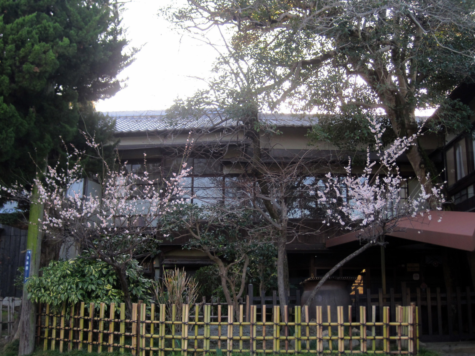 さて,荒手茶寮の玄関口に来ましたが・・・これって,左は梅で,右は・・・桜???