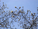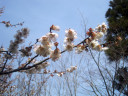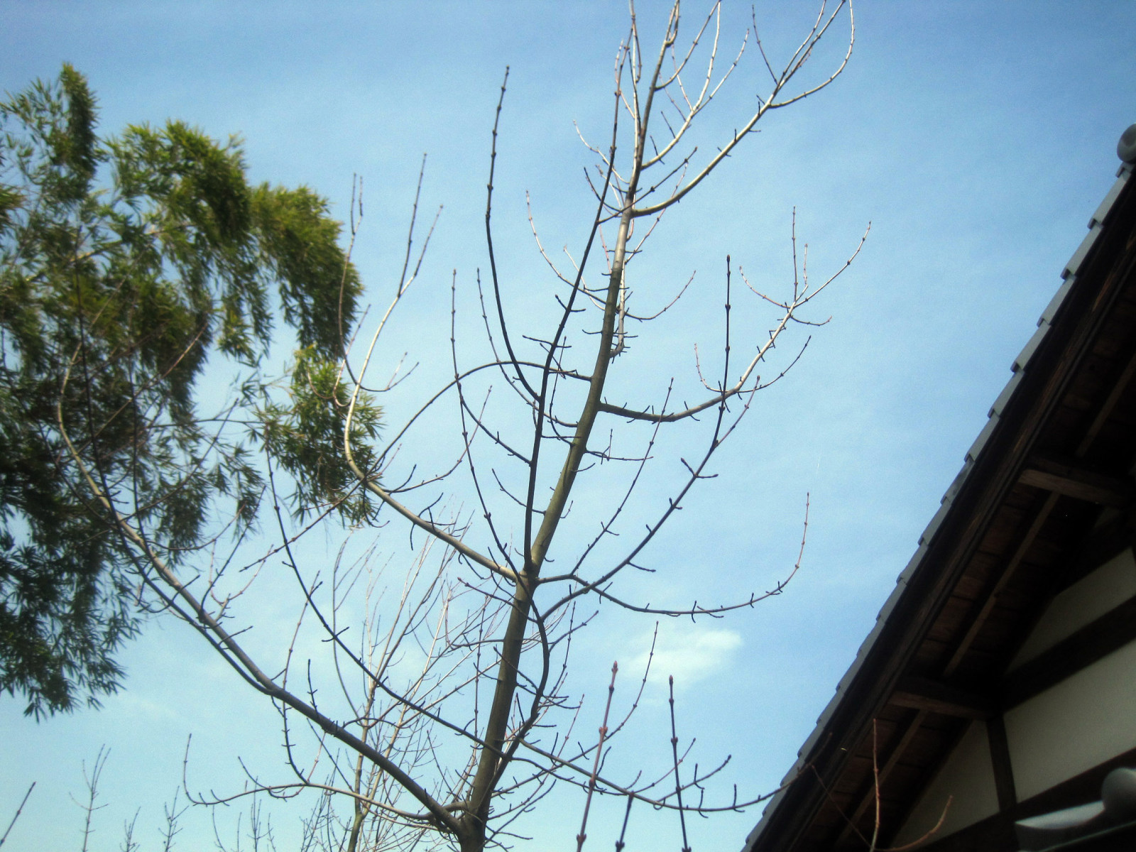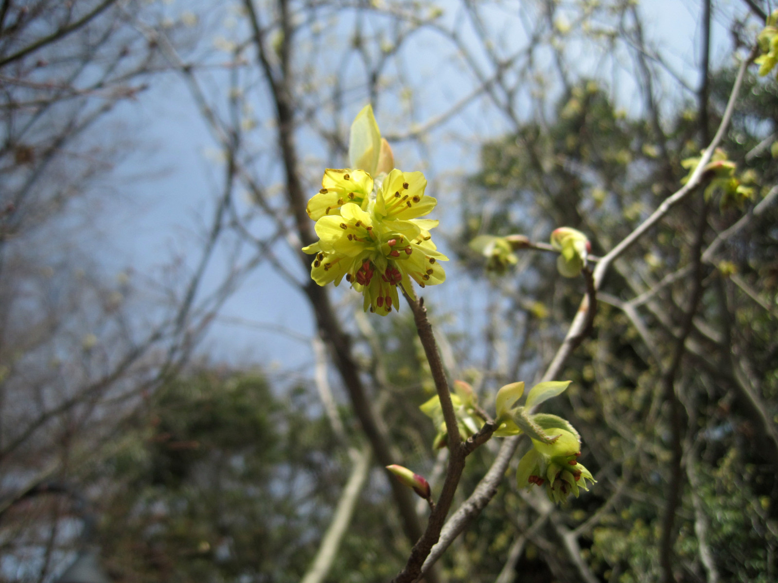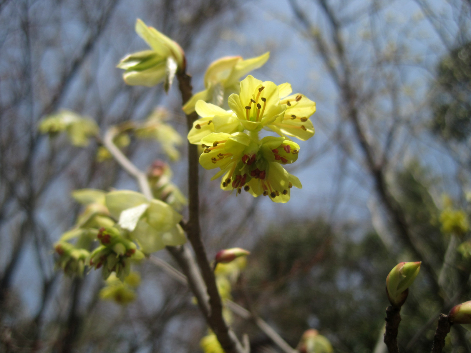 ハナノキ【日本の固有種で、長野・岐阜・愛知・滋賀の4県にのみ自生する。最近では街路樹や公園などに植栽されていることも多い。樹高は20mほど。雌雄異株。花期は、3-4月で、新芽が吹く前に赤い花を咲かせる。これが名前の由来となっている。落葉樹で秋には鮮やかに葉が紅葉または黄葉する。国の天然記念物に指定されている他、愛知県の県木ともなっている。環境省のレッドブックでは絶滅危惧II類に指定されている。近江国、美濃国、尾張国などではこれを栽培するものもあったが、自生種は飯沼慾斎「草木図説」、伊藤圭介「日本産物志」に、美濃、信濃国の山中にあることが記されているだけであった。久しく知られることなく、明治末年、岐阜県坂本村(現・中津川市)に自生していることが発見され、その後県内で自生しているのを発見された。岐阜県中津川市坂下(花の湖)や滋賀県南花沢町(現・東近江市)のものが有名である。】だそうです。
