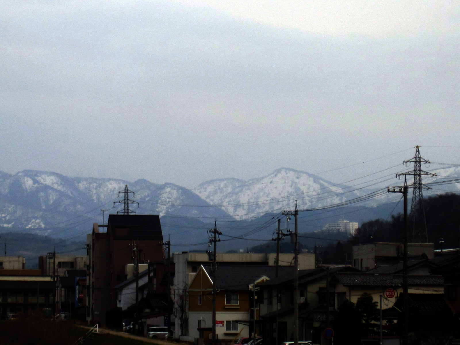 金沢は,犀川と浅野川に挟まれていますが,こちらは浅野川・・・遠くの山は雪!
