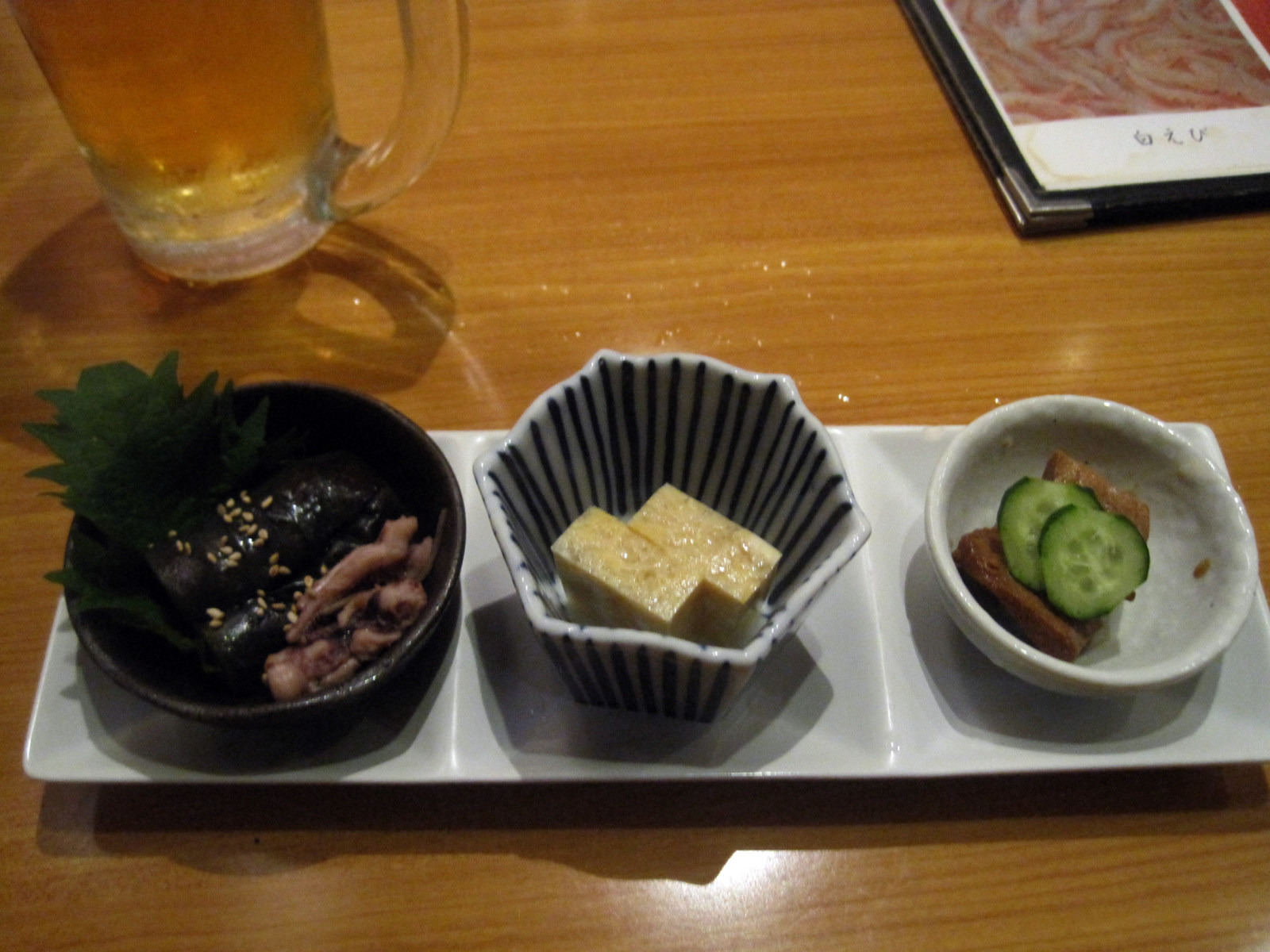 ホタルイカの唐揚げ? イカとホタテのOXO焼き(記憶できず)が美味でした。
