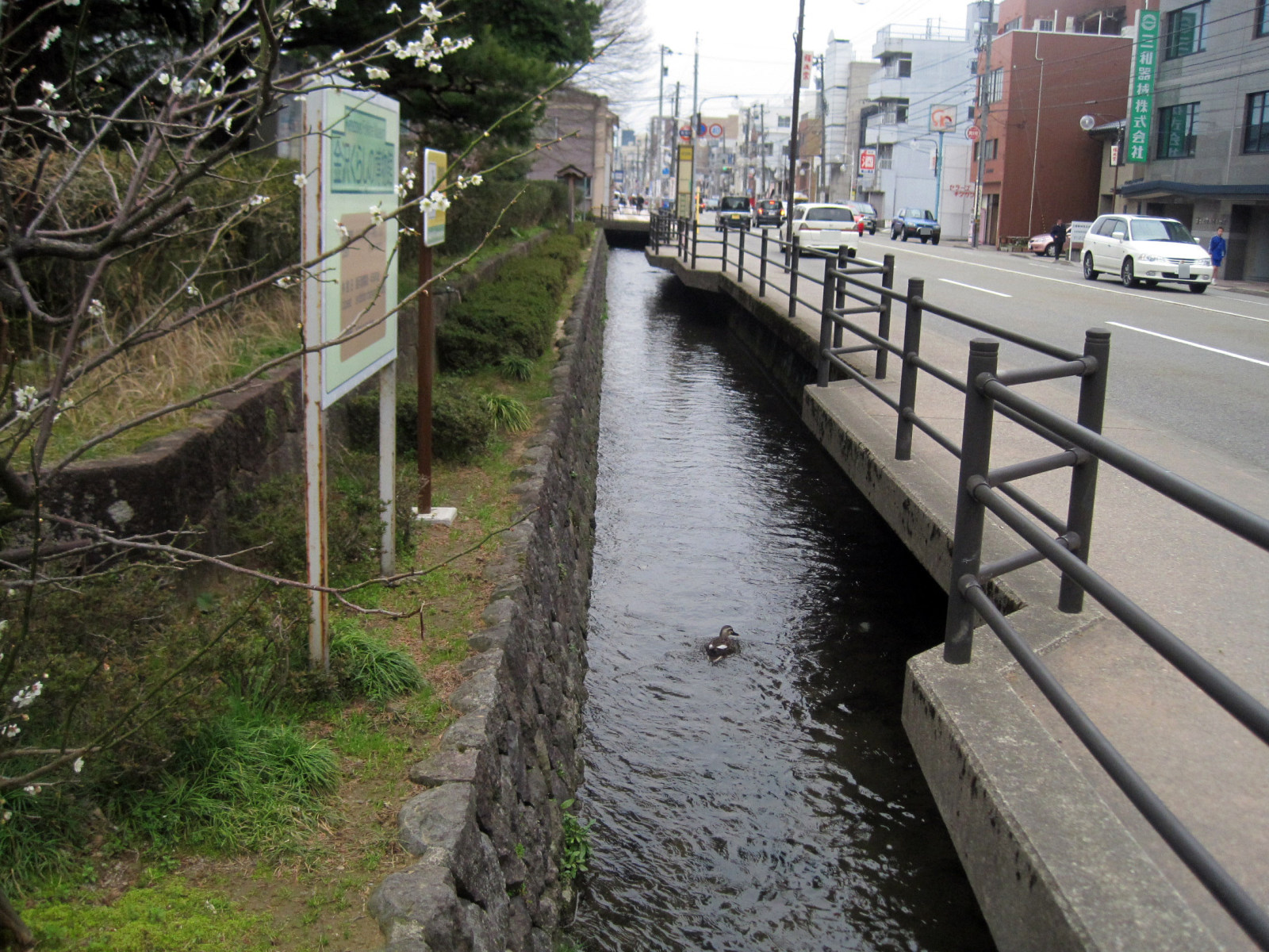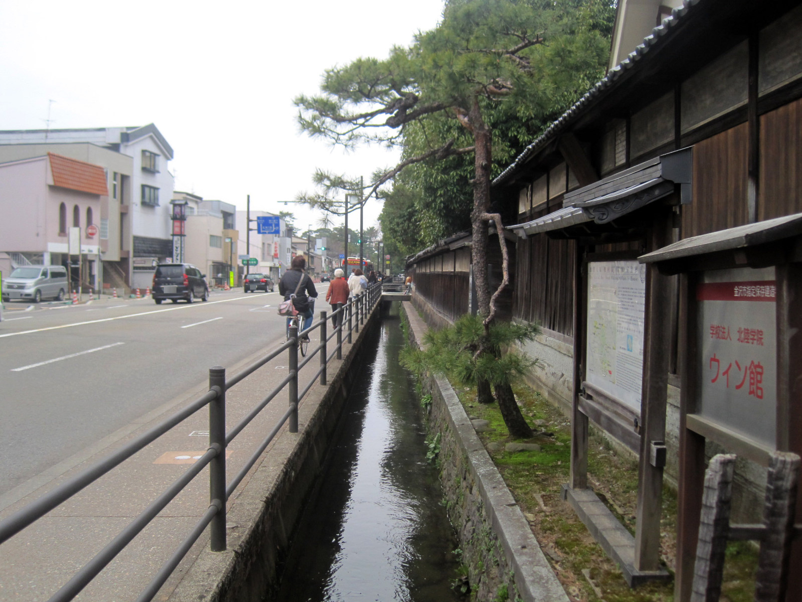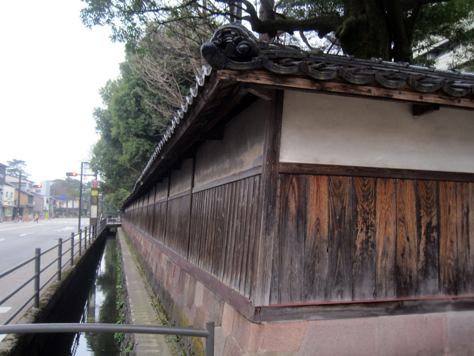 そうすると板塀がずっと続いています,中は金沢医療センターですから,きっと最先端の病院! 実は,ここは辰巳用水って・・・歴史的な街並みというか,でした。