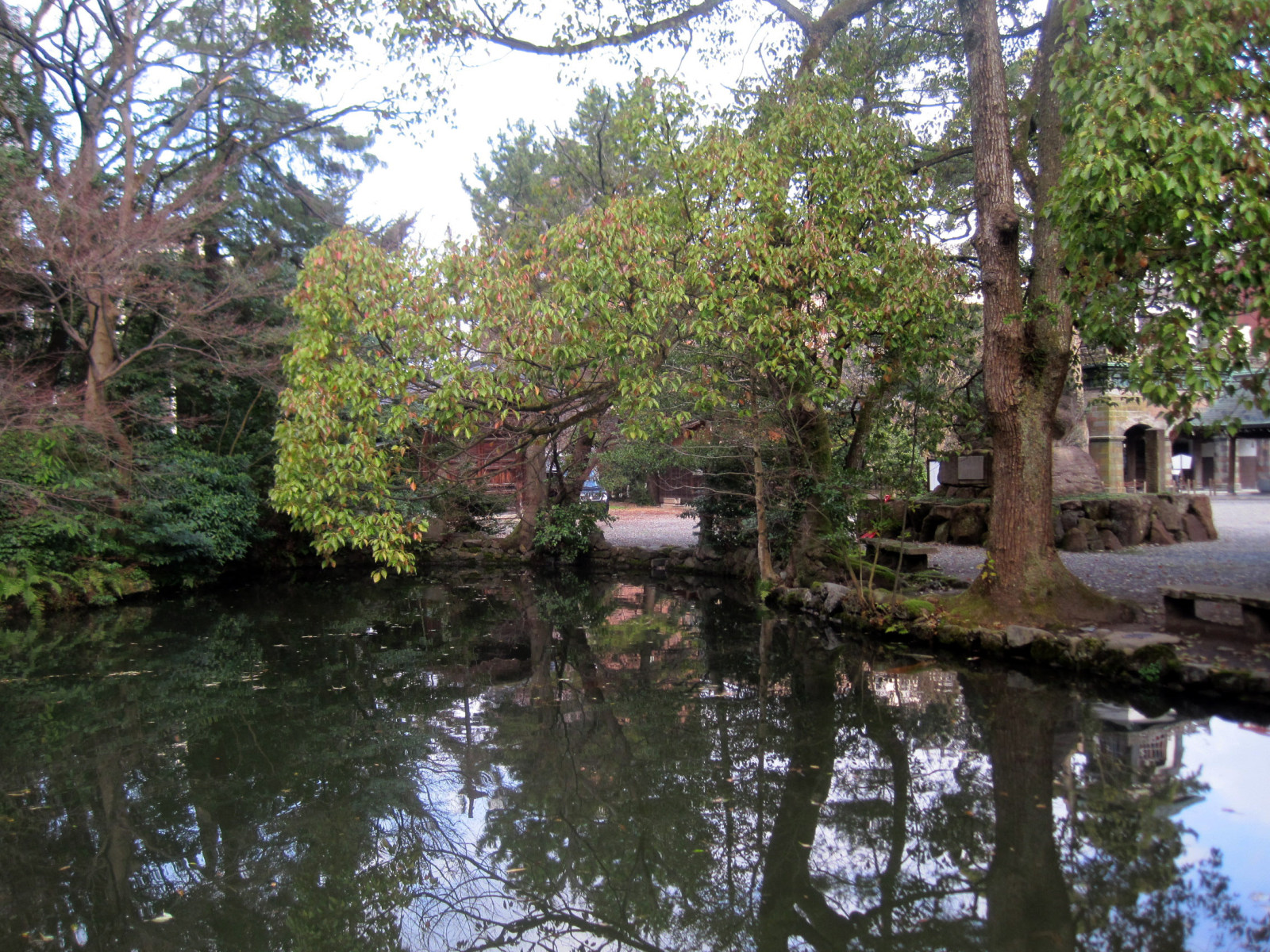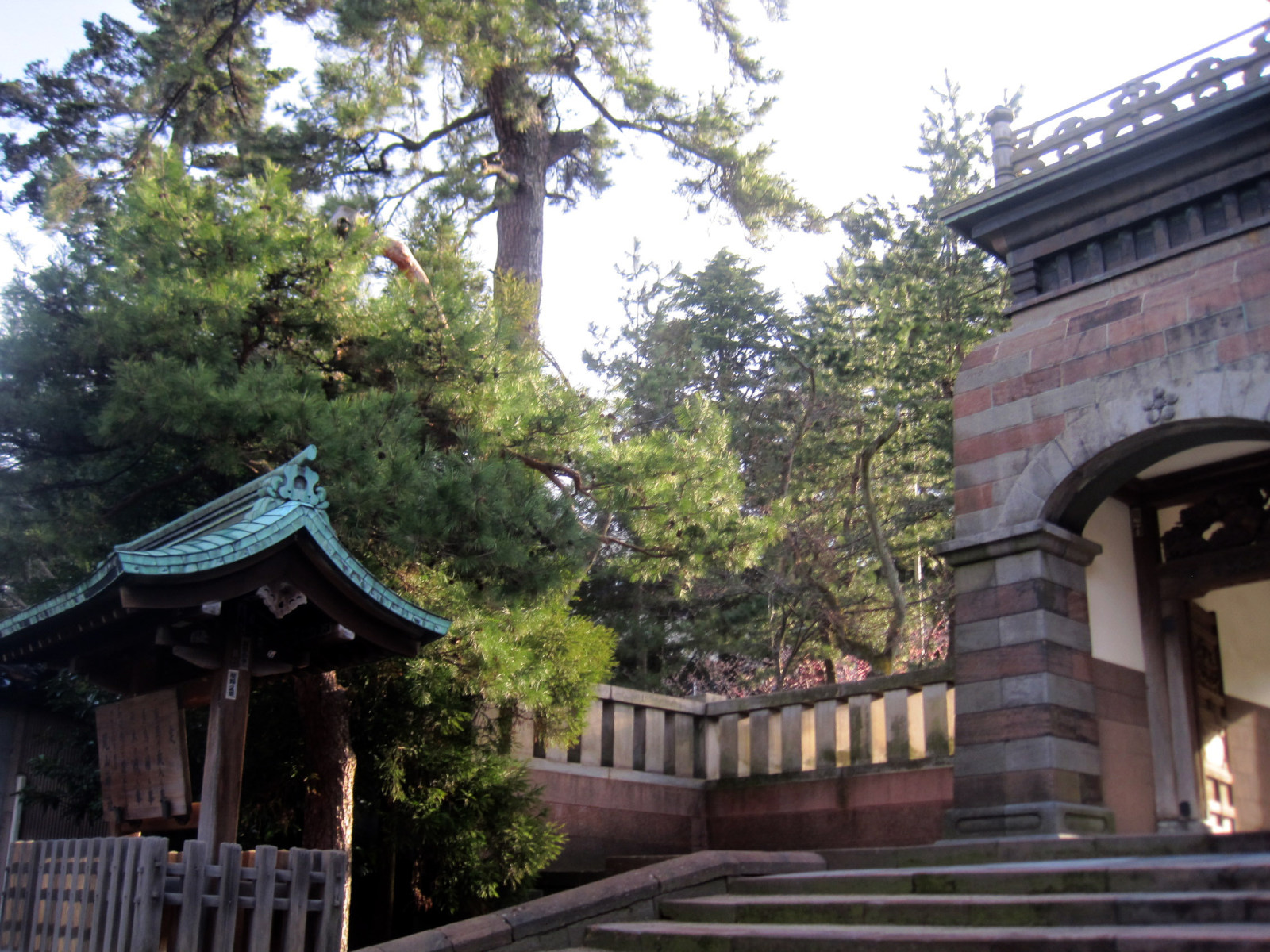 【前田利家公薨去後、英霊奉祀の企てありしも憚る所あり、越中国射水郡守山海老坂烏帽子峰鎮座の八幡大神を遷座すると揚言し、公の英霊を卯辰山麓に祀り卯辰八幡社と称す。明治維新後藩士及加越能三州の人士相計り明治5年出願。翌6年許可と同時に尾山神社と改称郷社に列格、同年現今の社地に遷座。翌7年県社に昇格。明治10年聖上北陸御巡幸金沢に御駐輦に際し、御幣物奉納爾後数回御幣帛下賜。明治35年別格官幣社に昇格。尚、重文神門は明治8年和漢洋混用の特殊の建築物として異彩を放つ。神苑、金沢市指定文化財。泉山築山を設け、池泉廻遊の様式にて、楽器に型どり、写実的表現の妙をつくしている。重文、朱塗雲龍文蒔絵大小、桃山時代の作風を示している。】ですもの!