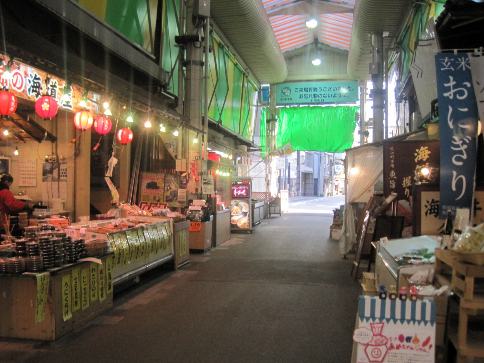住居内まで入る時間がなく・・・近江市場を抜けて・・ここがとっても活発!! 庶民の市場って感じ!!