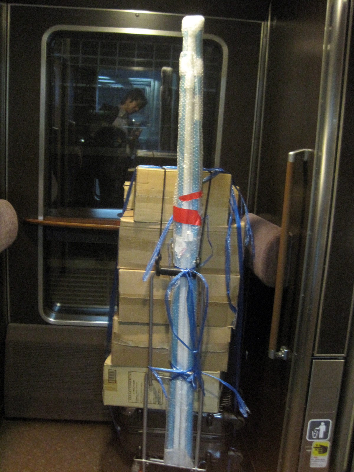 でも,車掌さんが・・・グリーン車の元々喫煙室で,でも,今,何にも使っていない部屋に置かせてくださったので・・・米原までは指定席に座れました。とっても感謝です。