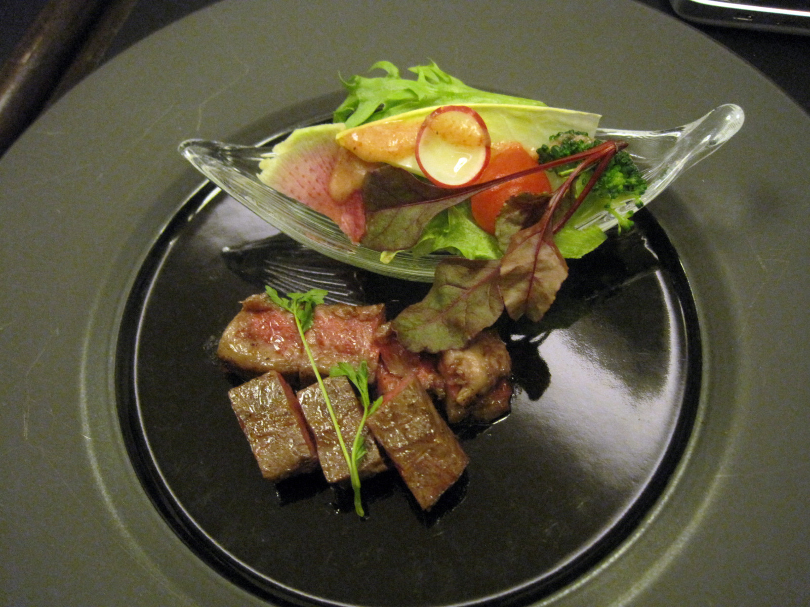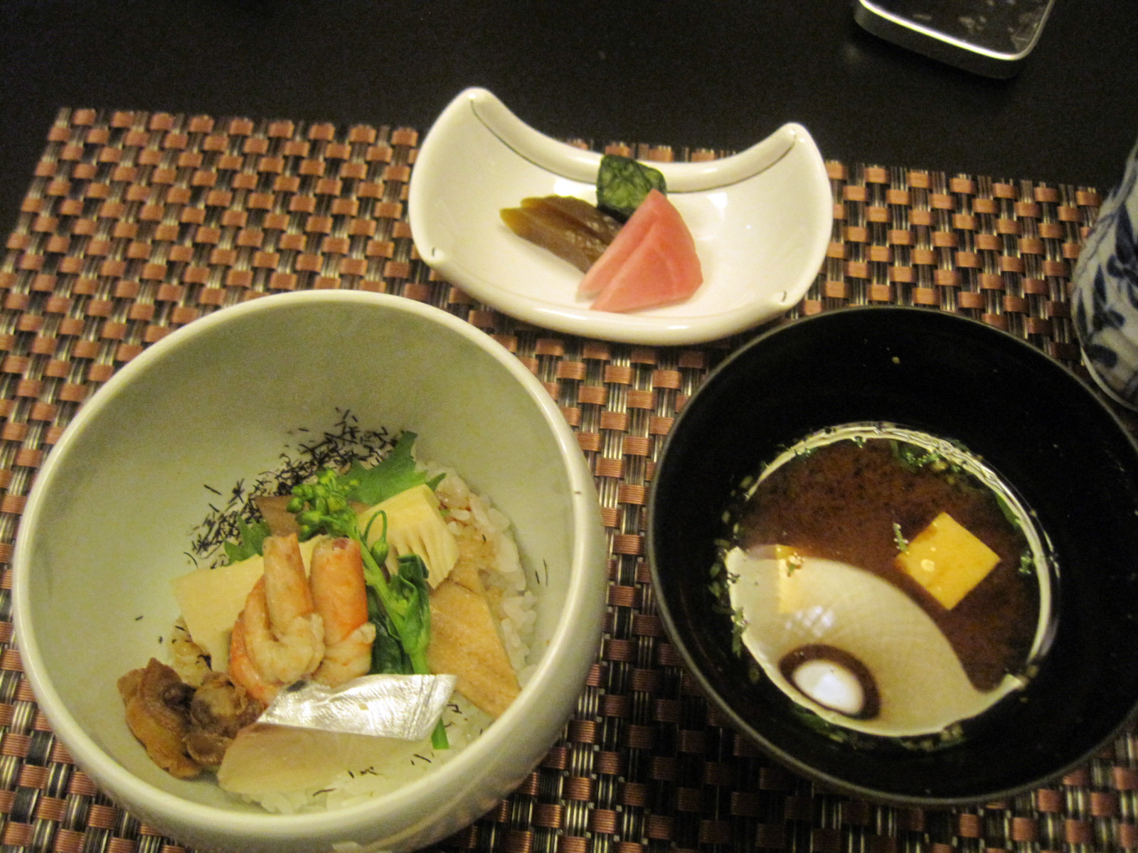 ANAホテル岡山の夕食で,それぞれから三品のうちで,一品を選ぶ春のコースでした。