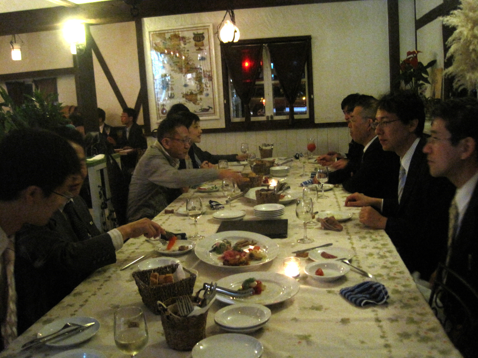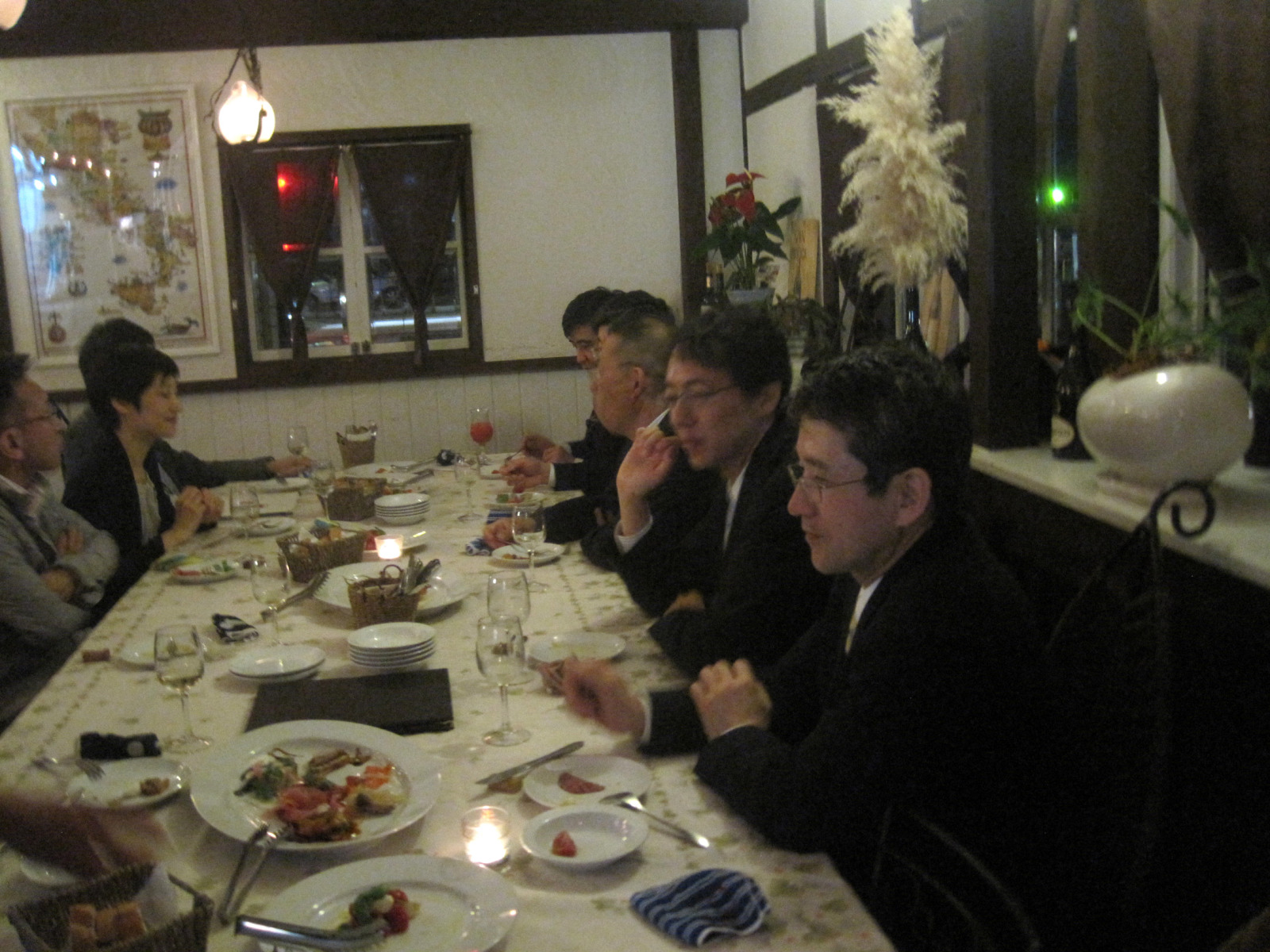 夜が遅かったので,そのまま,すぐ近くのイタリアンレストランで交流会・・・この場所の選定も,河村先生にお願いしました。感謝でいっぱい,かつ,河村先生も参加してくれました。