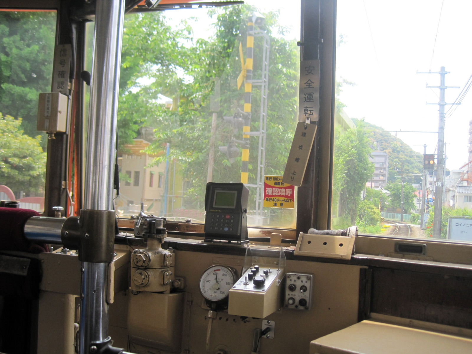 上一万駅で乗り換え・・・運転士さんの練習なのでしょうね,。「試運転」車両を見かけました。