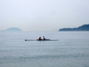 松山大学のボート部かな,練習中でした。