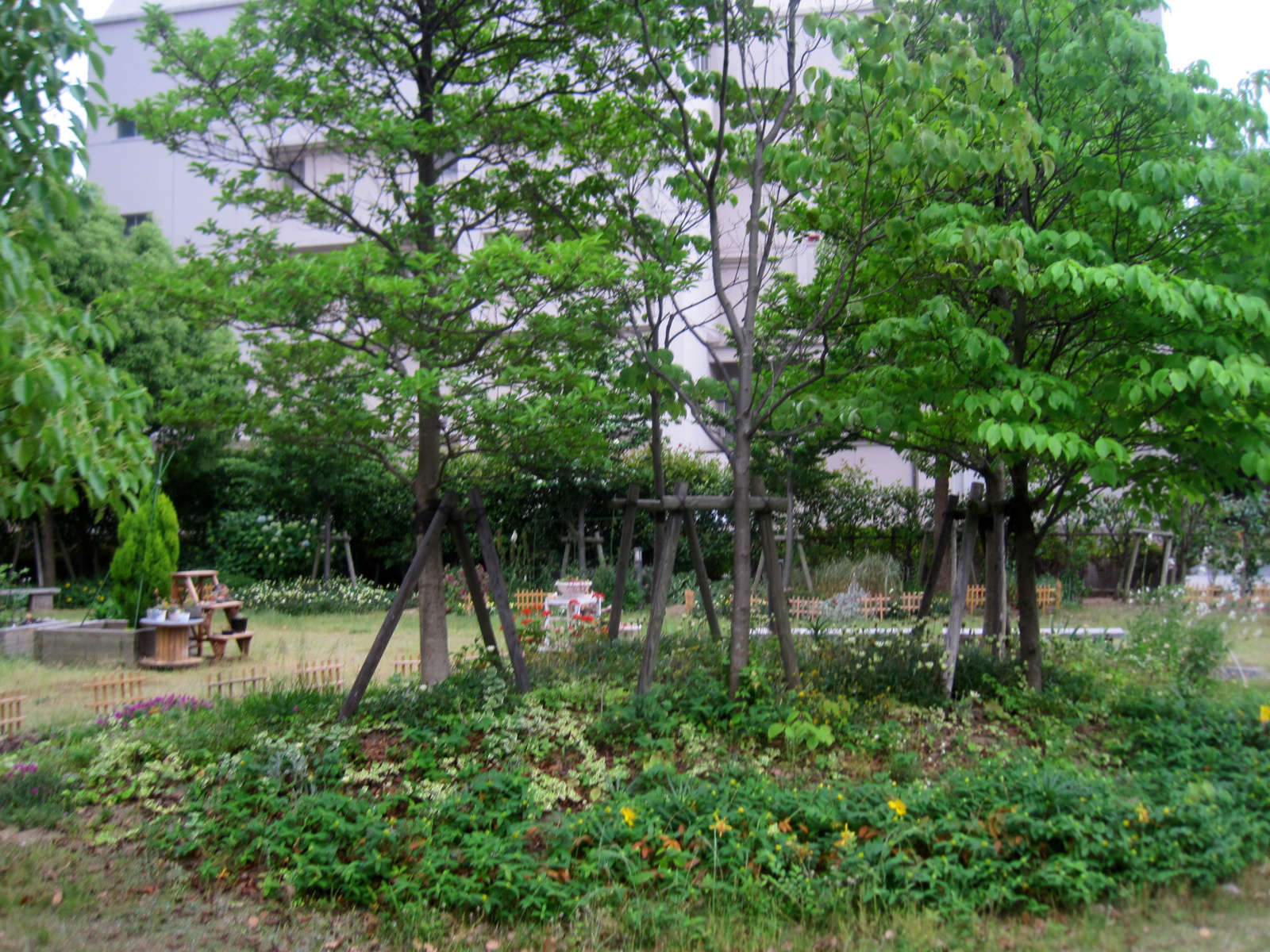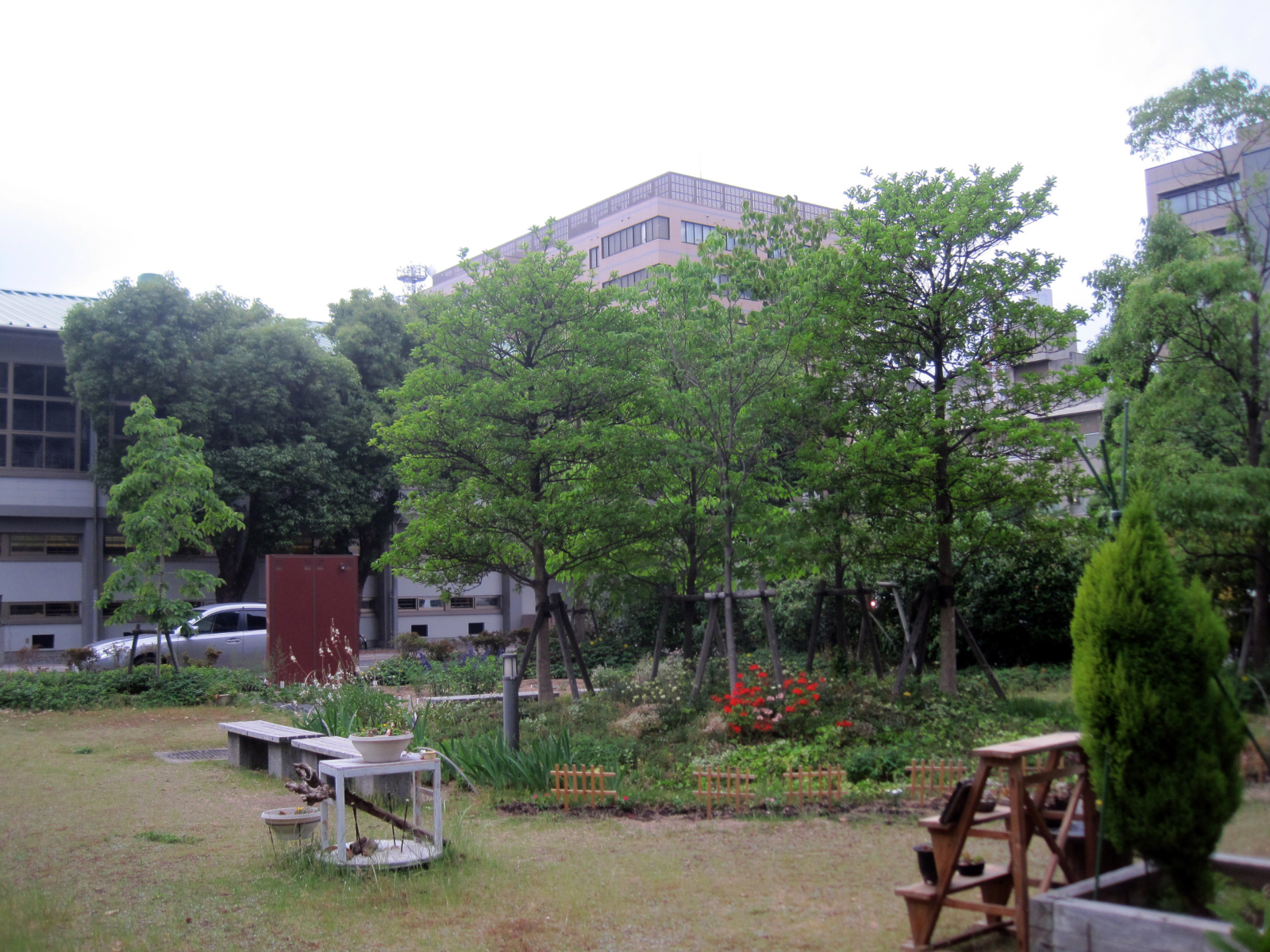 病院棟横の花壇は,いつ行っても,いろいろ工夫があって,いろんな花々で和みます。