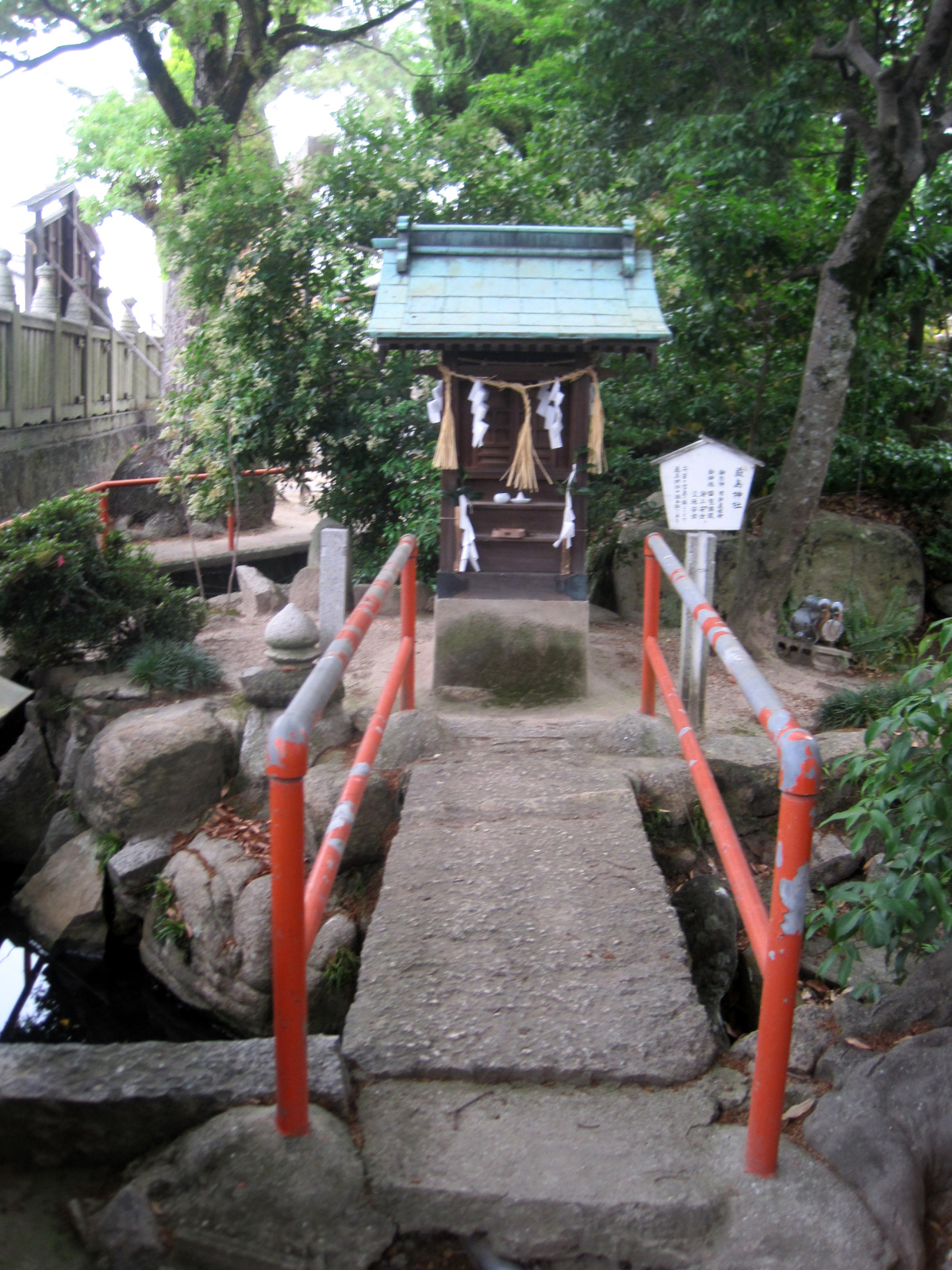 境内には池も設えてあって・・そうか,岩は由緒にある「波に現れた大岩」なんですね!