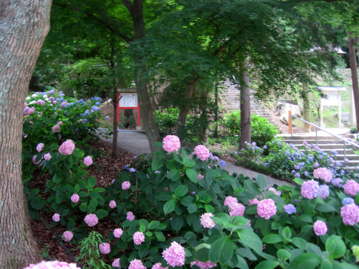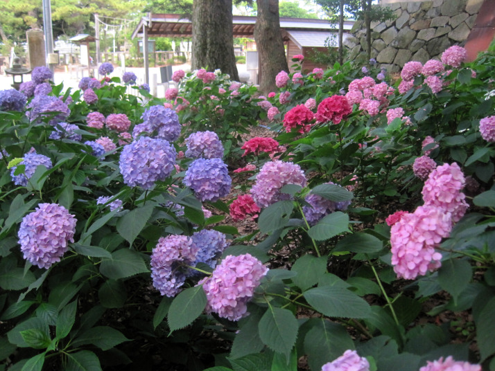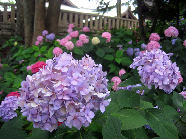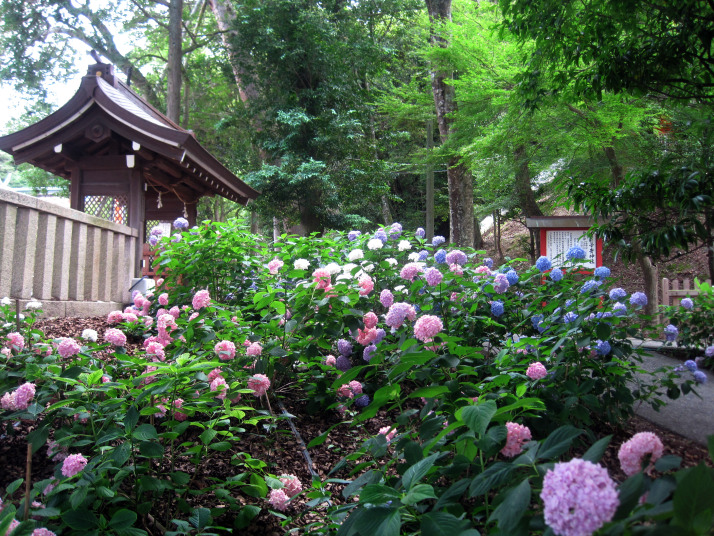 広い境内ですが,塀で囲ってある拝殿〜本殿の脇に・・・・紫陽花園もありました。