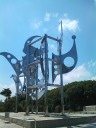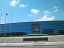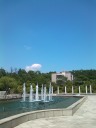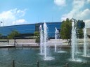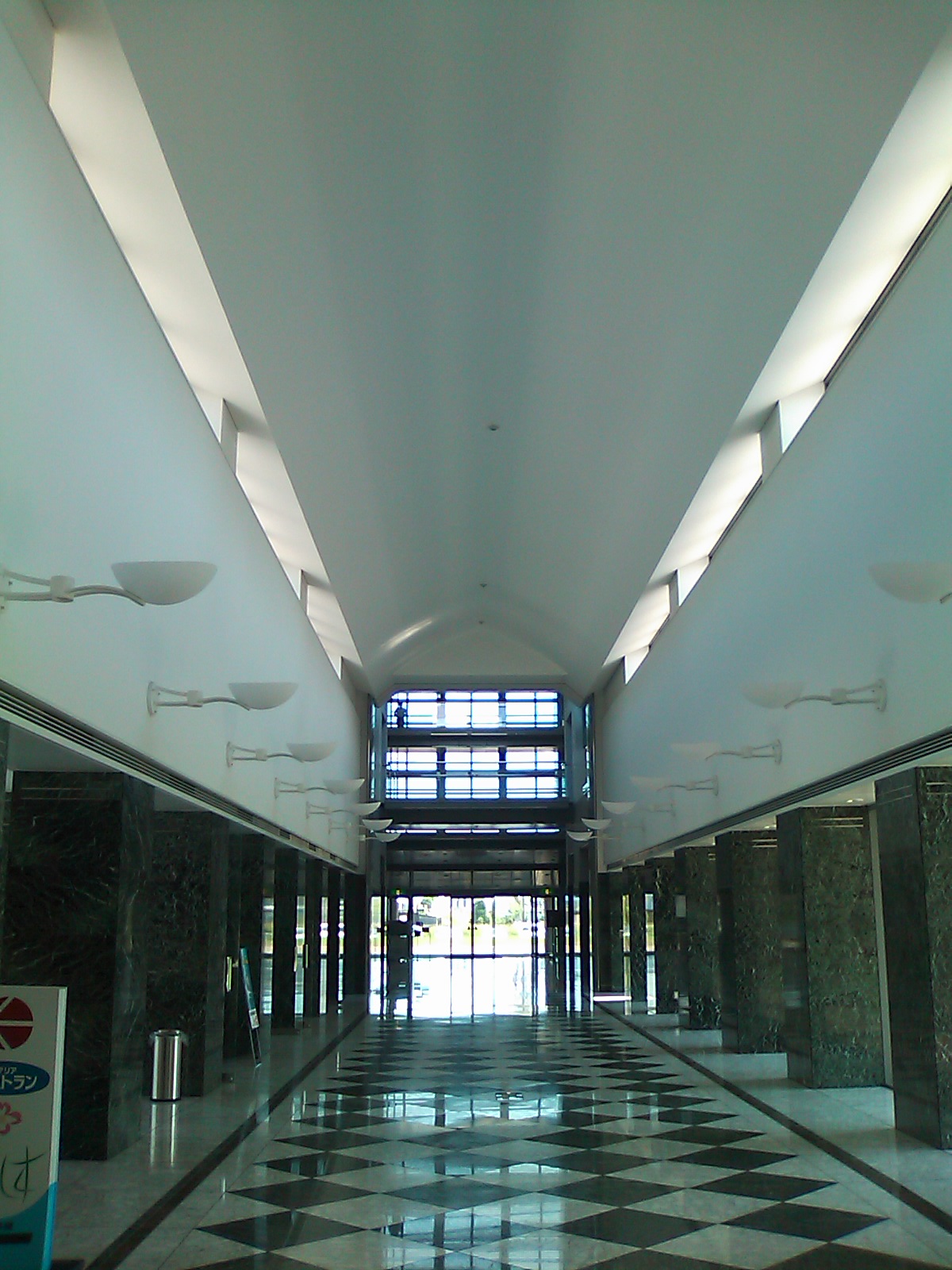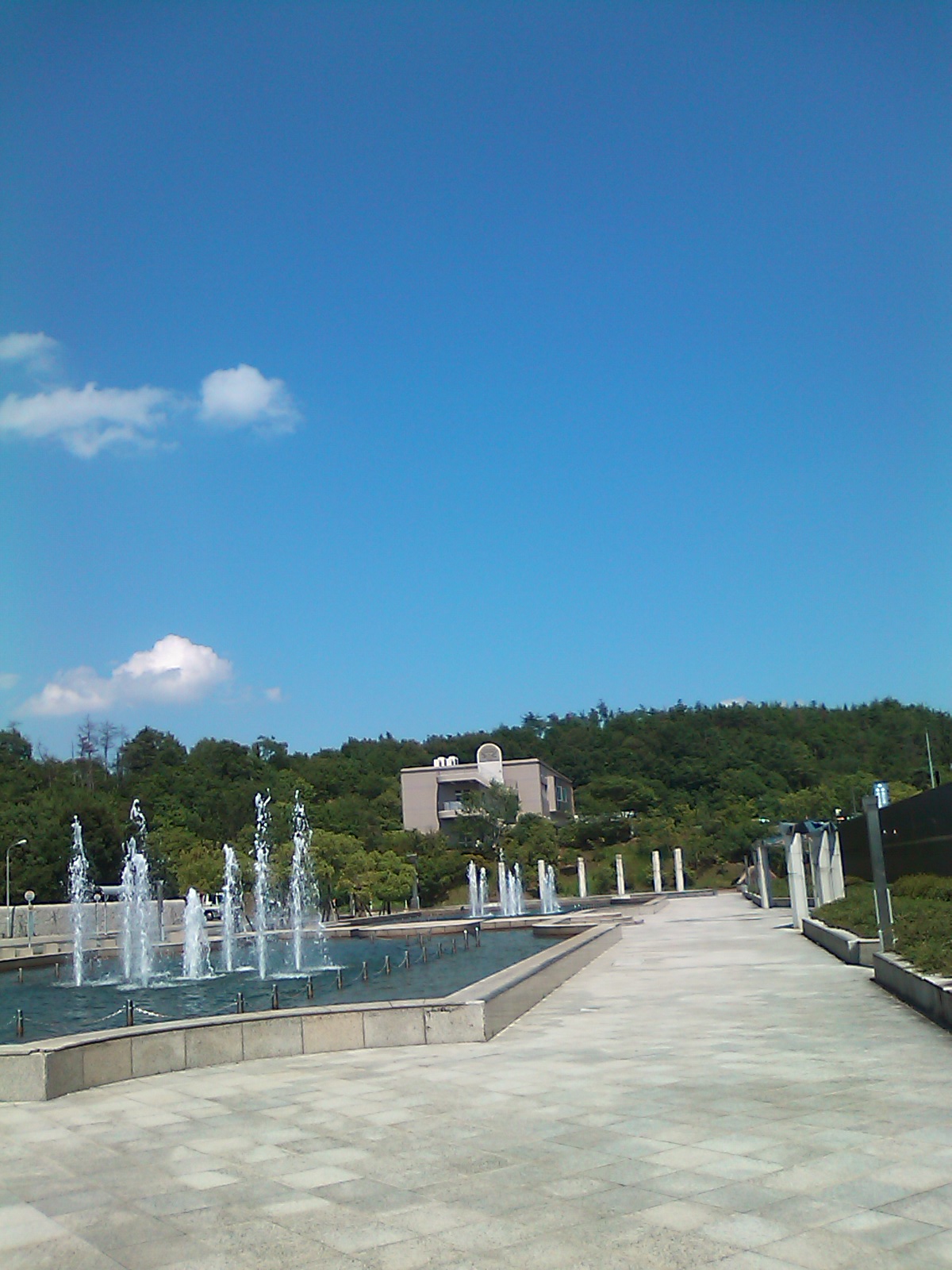 建物は・・青を基調に(っていうか,空の色が映し出されている)噴水などもあって,涼やかですが〜