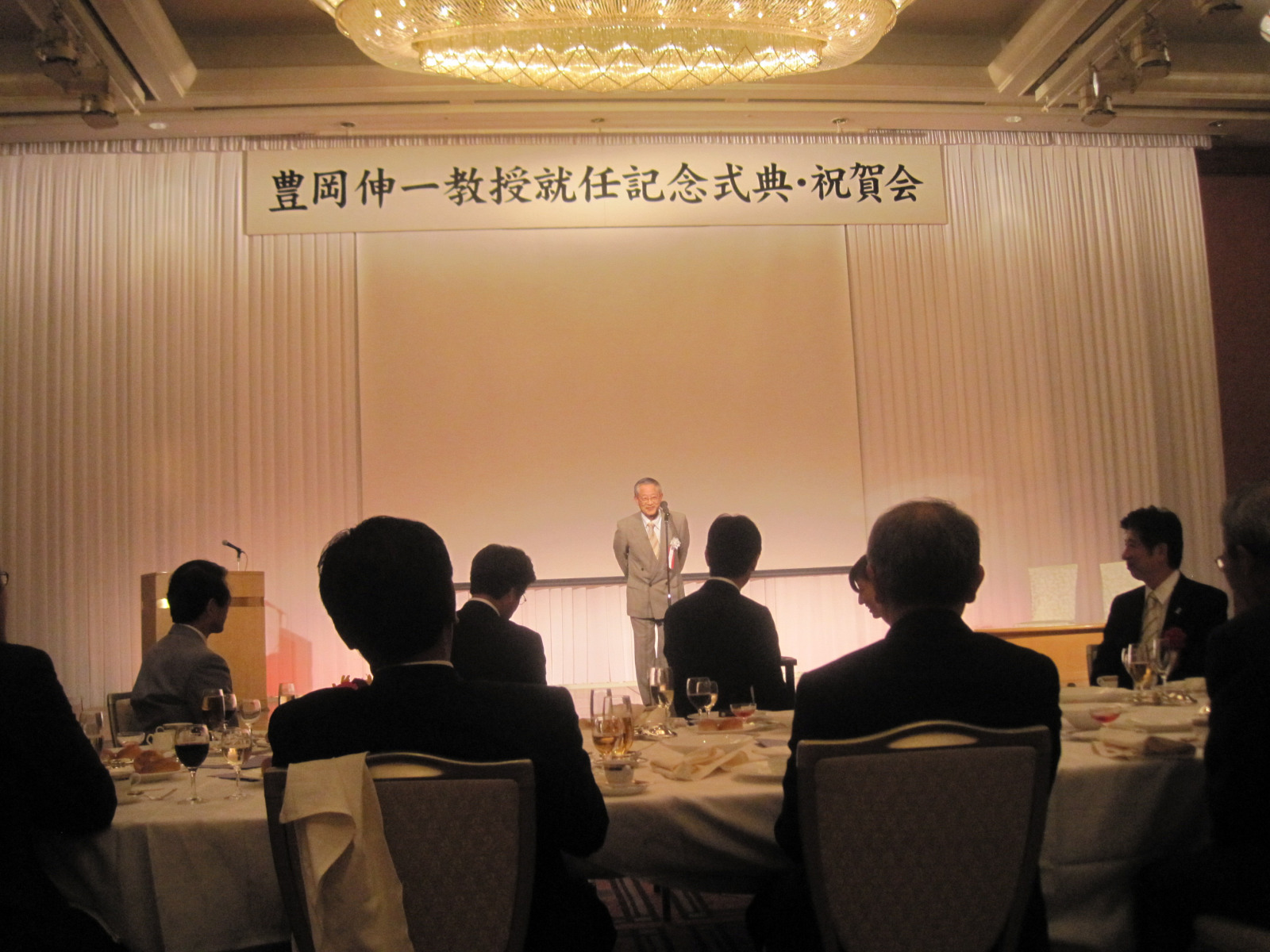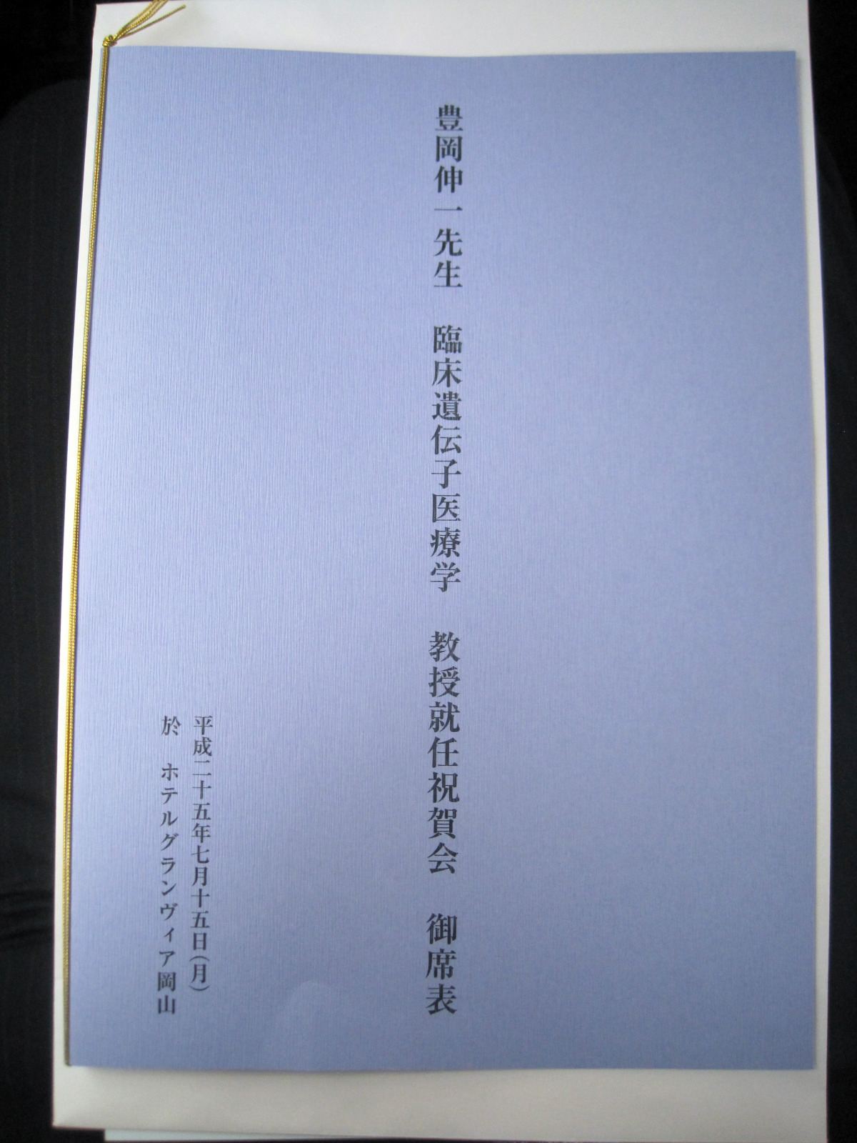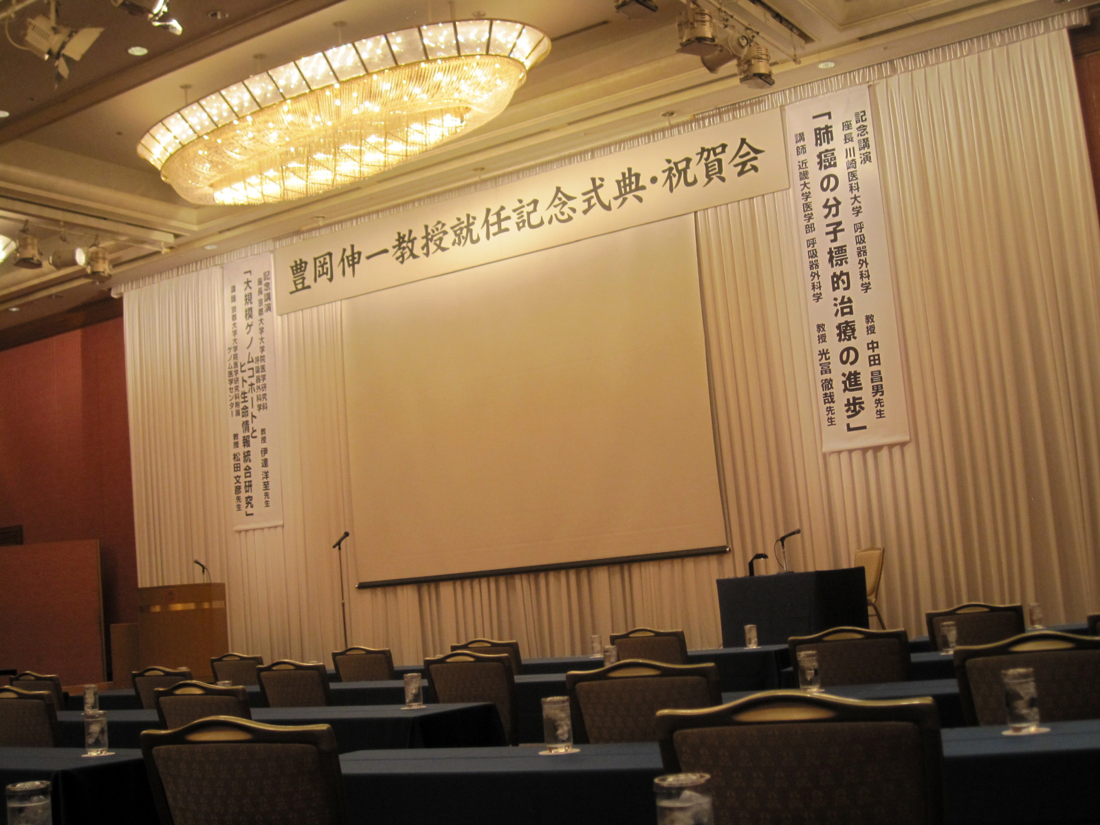 岡山県の助成金「電源」などで共同研究をさせてもらっている岡山大学呼吸器外科の豊岡伸一先生が,4月から岡大の新部門「臨床遺伝子医療学」の教授にご就任されていて,その祝賀会でした。