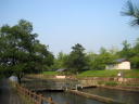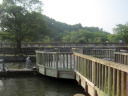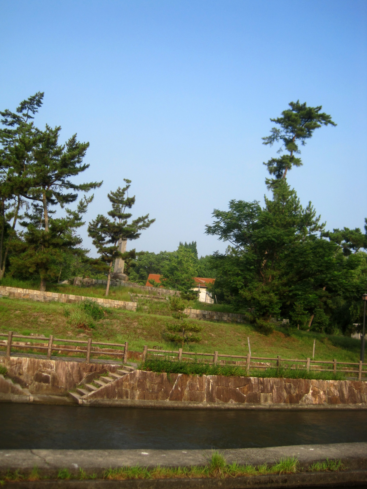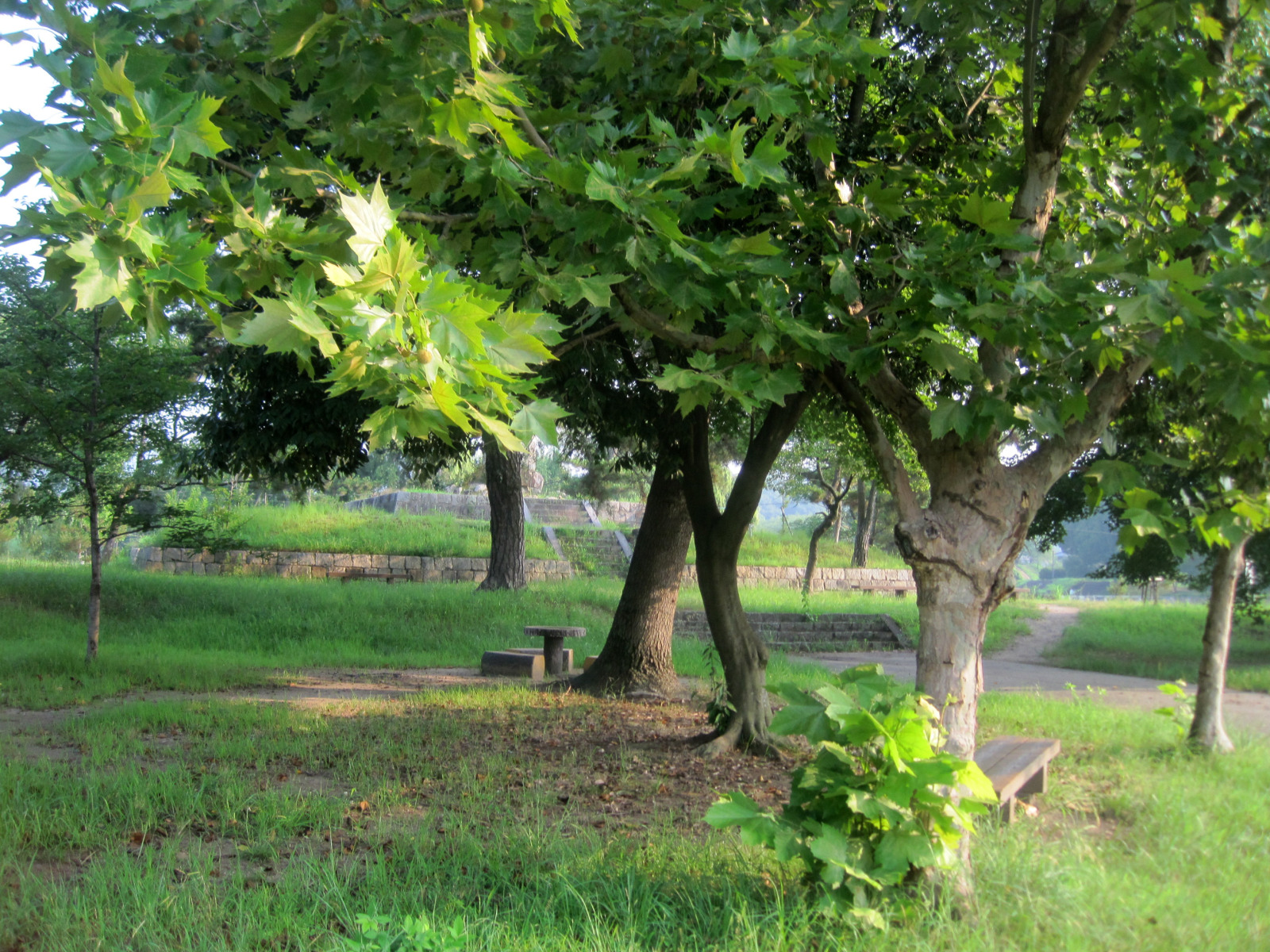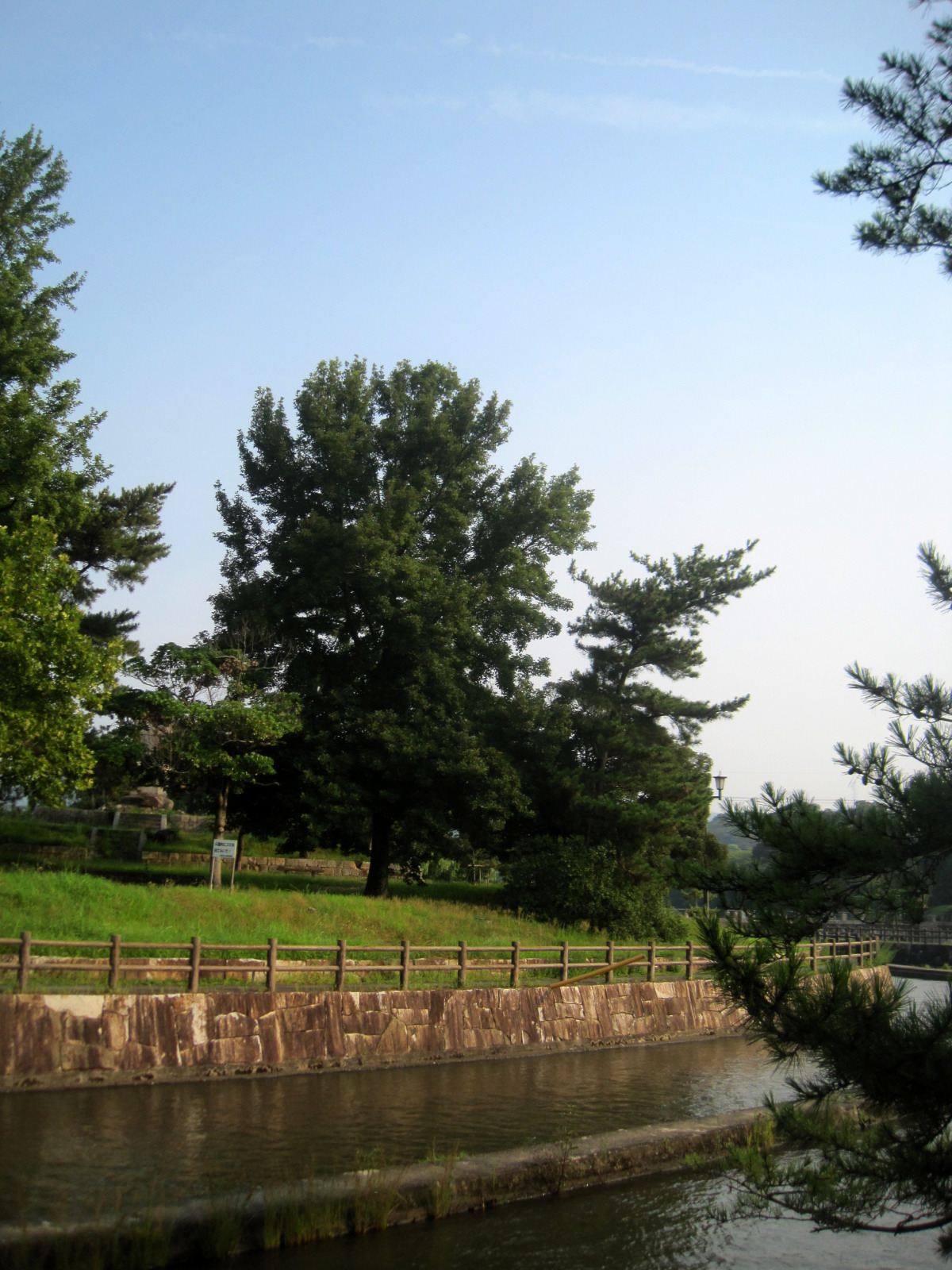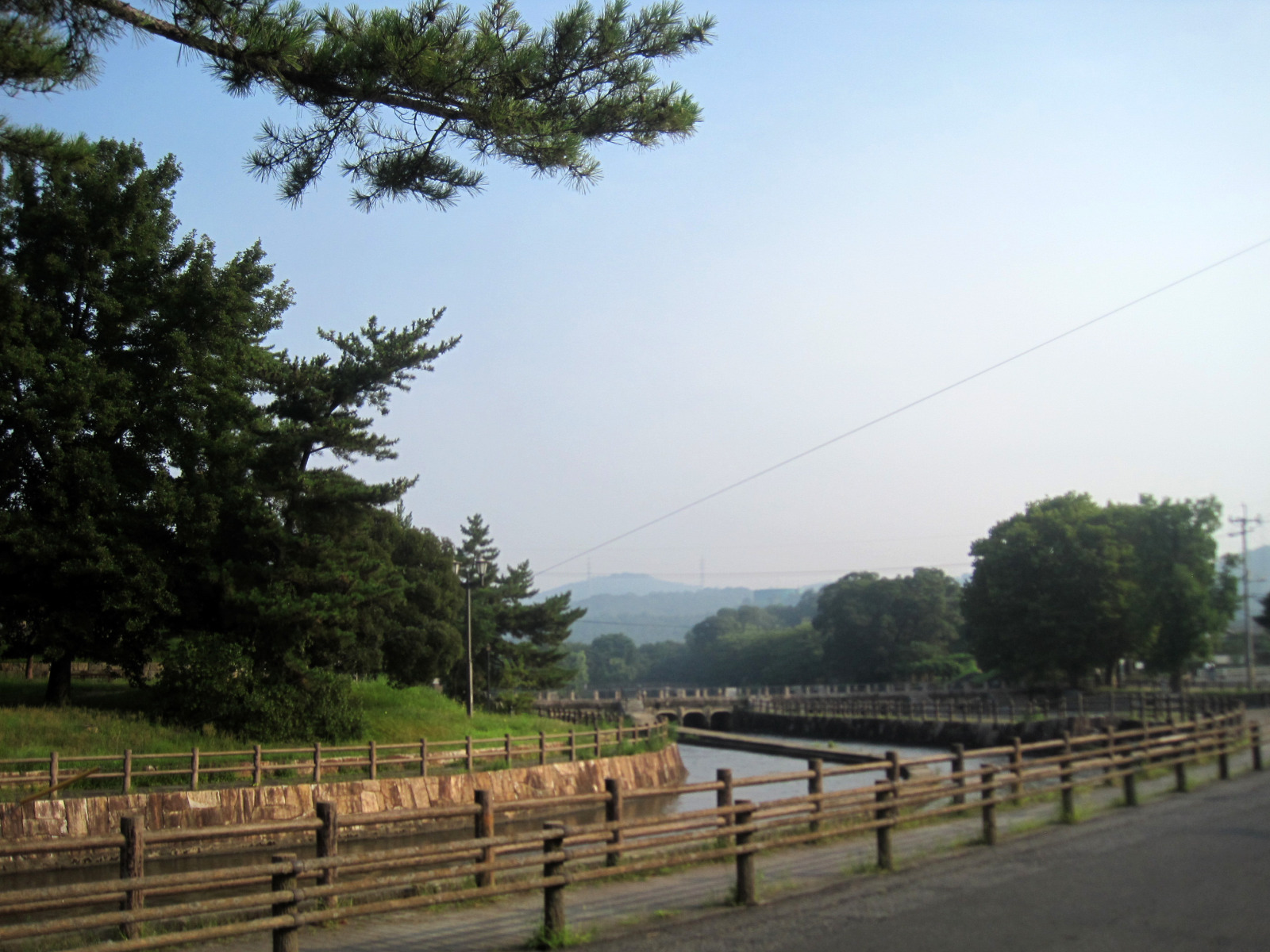 一番左は倉敷駅の西から美観地区で倉敷川に。真ん中の配水はどんどん枝分かれして,旧倉敷市街地西側全域に広がった後,種松山の東で吉岡川に集合して茶屋町で倉敷川に行くメインと,大平山と種松山の谷間から水島地区に広がって八間川にいたる農業用水に。さらに西側(この公園での水遊びのメインの流れ)は,高梁川と並走しながら西阿知地区や,大平山の西を抜けて連島地区を潤しながら高梁川河口付近(JFEのあたり)で貯水池になっています。倉敷水島の干拓の歴史ですよね!