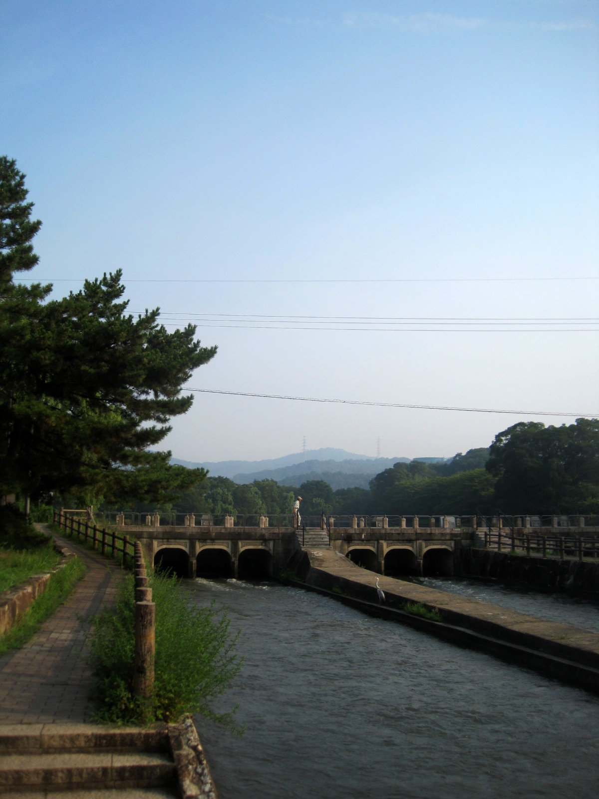 そして「ちょっと寄り道/ブラ@タケミ」で酒津公園。配水池から東西用水(高梁川 笠井堰掛) 疏水農業用灌漑用水路です。