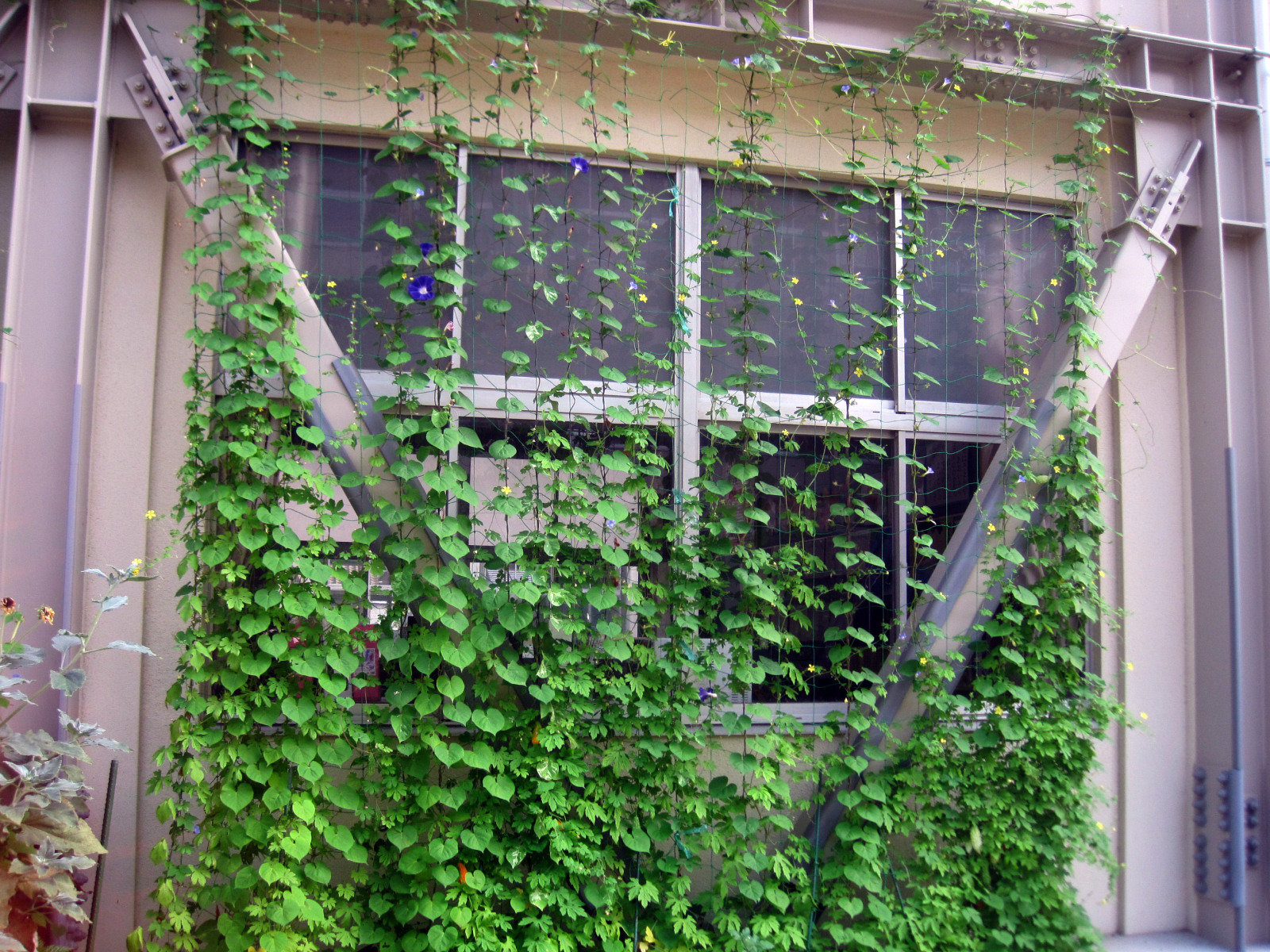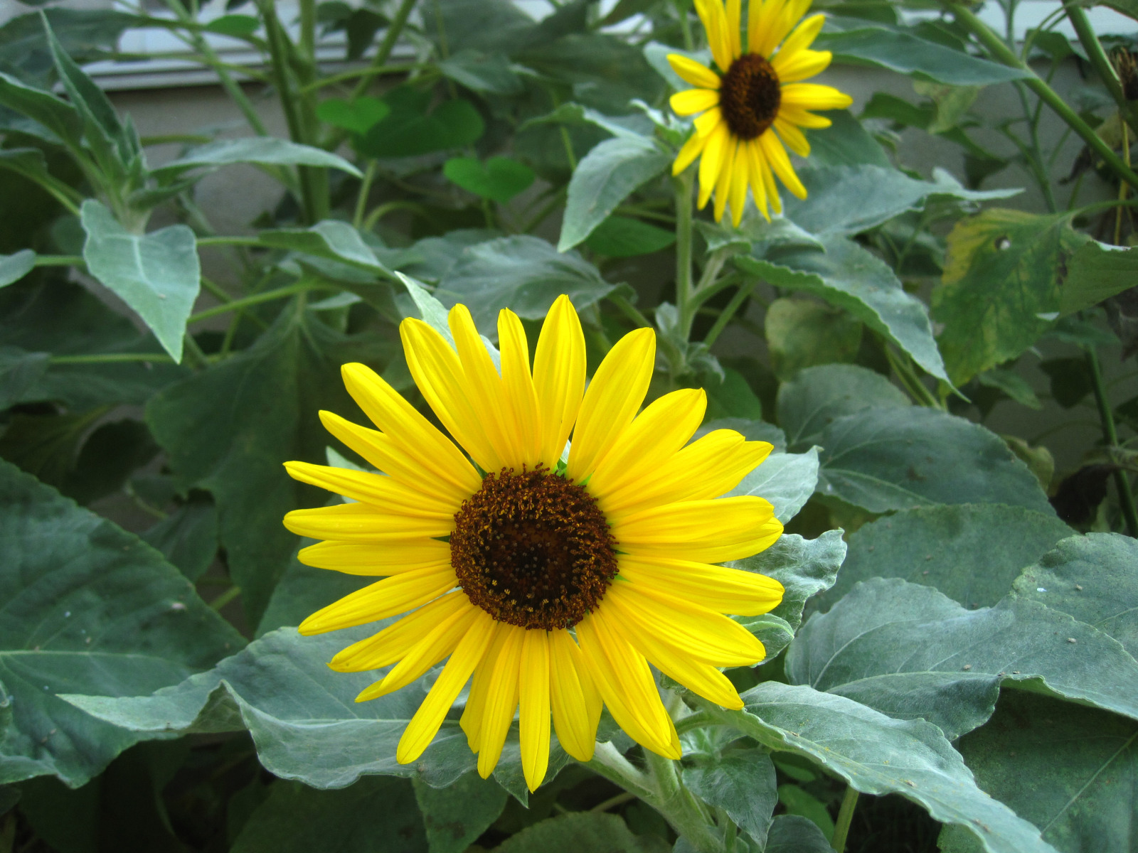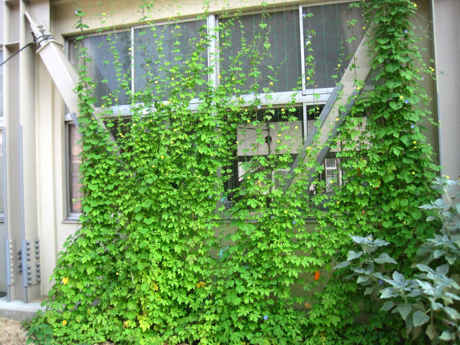 小学校は夏休み,でも,窓際には朝顔や向日葵!