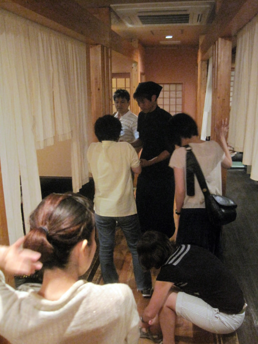 | 2013.8.19. JITKAの歓迎会 国際医学生連名(IFMSA)を介してチェコから,Ms. Jitka ?lehoferova が,今月一杯,川崎医科大学衛生学で研修中です。週末は,川崎医科大学のESSのメンバーの学生たちが,近くのいろんなところへ見聞のために連れて行ってくれていますし,うちの教室としては,医学研究の研修を体験してもらうってスタンスですが,漸く,歓迎会になりました。 スゴイ真面目で熱心な女子医大生さんです。いい想い出を作っていってね!!! で,居酒屋体験でした!!! |
