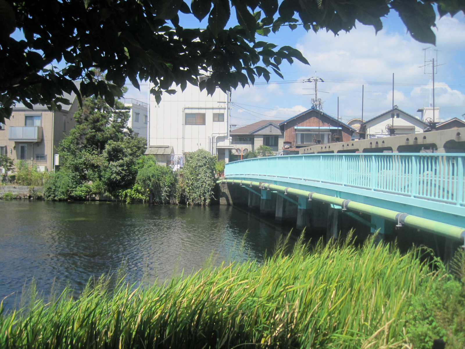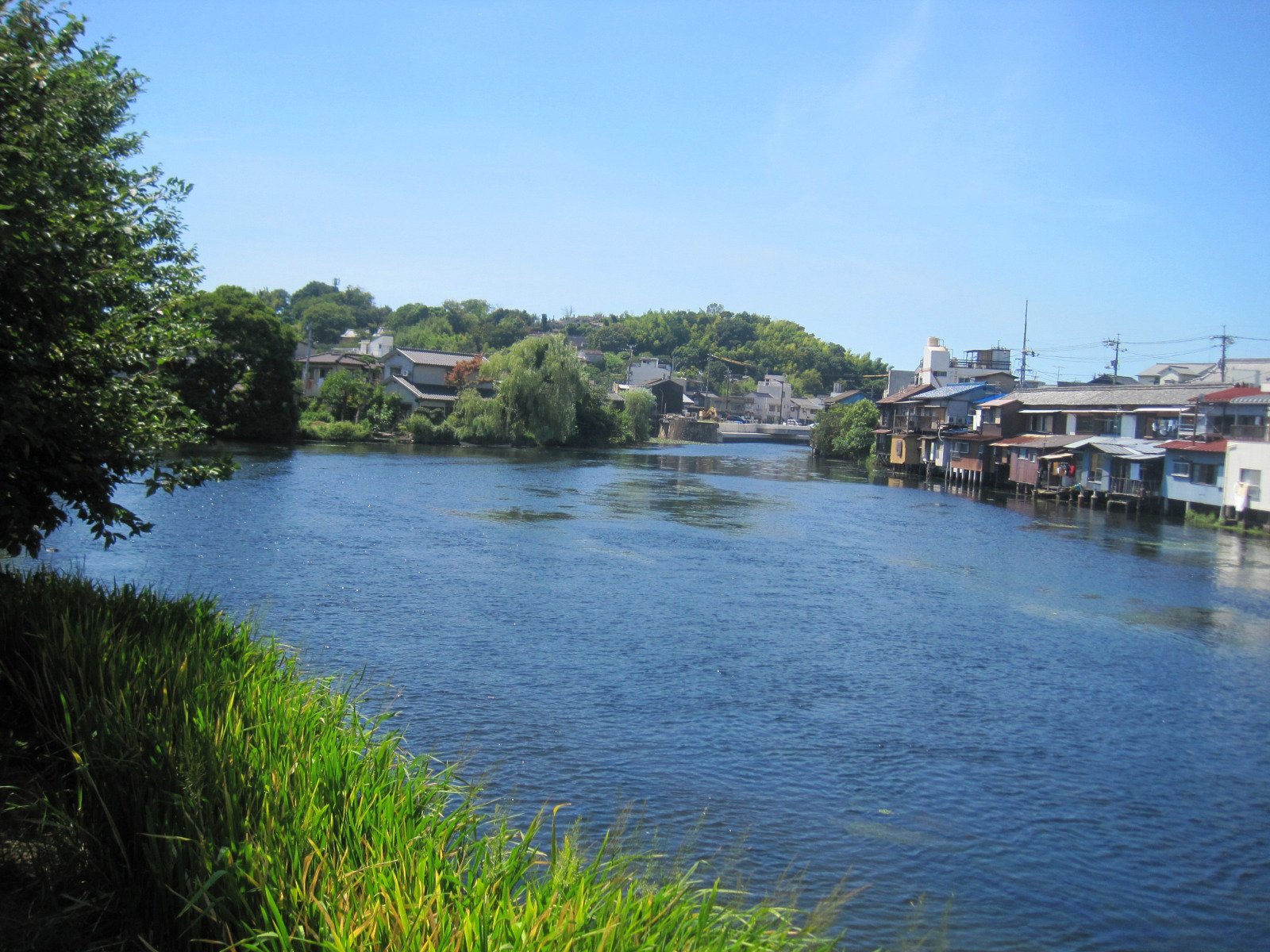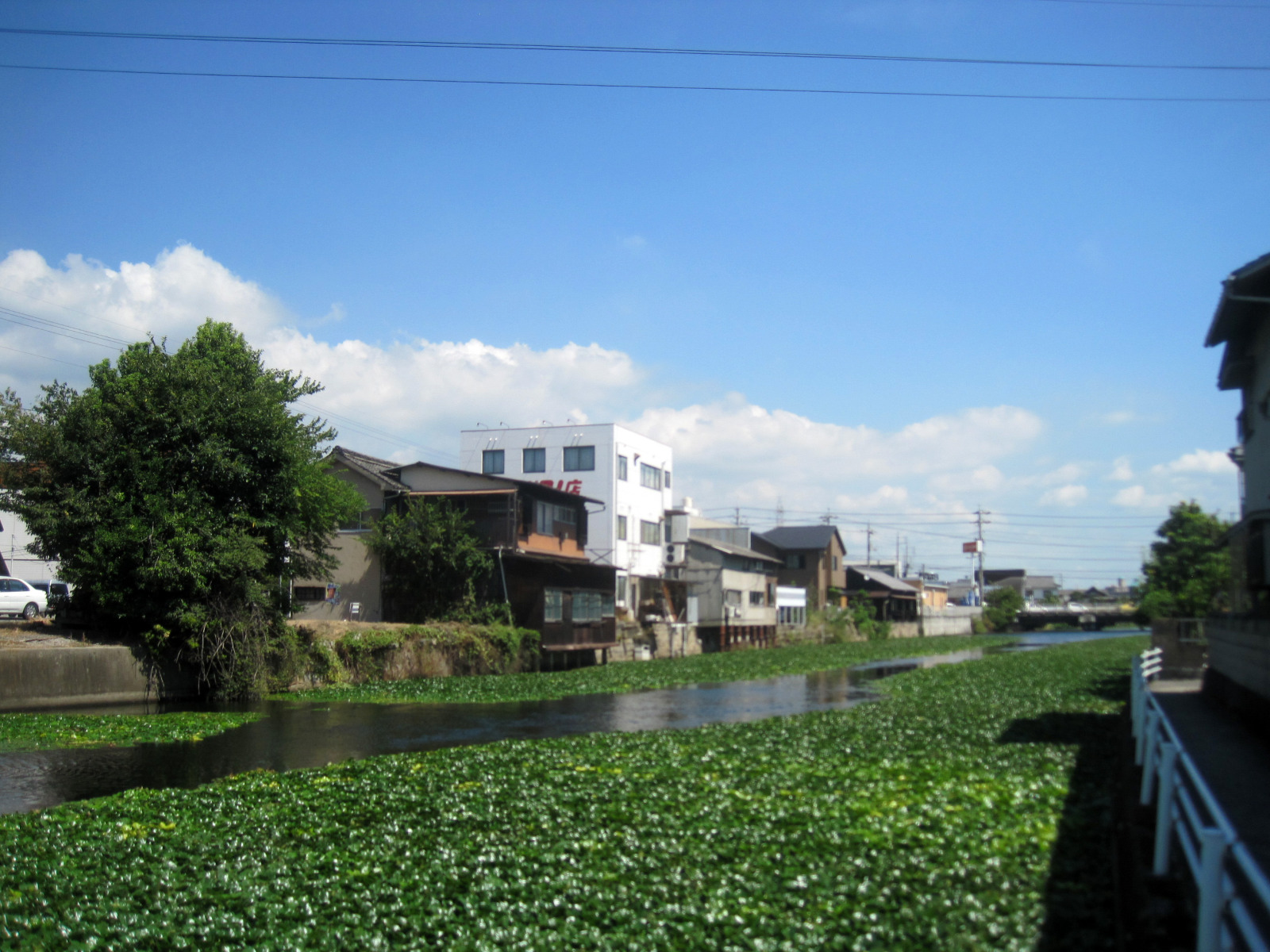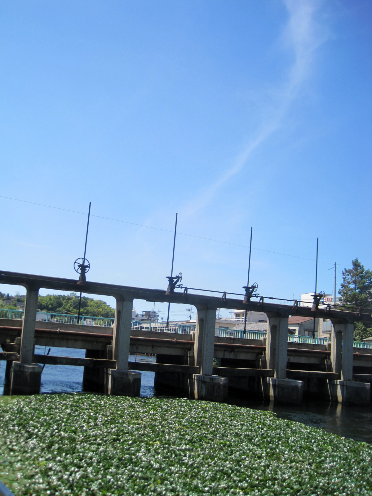 帰りに「ブラ@タケミ」! 玉島は用水路っていうか,そういったのが,縦横無尽だったり,そこここに溜まりがあったりして,支所の北側の広い溜まりを「溜川」と呼ぶようです・・で,市立玉島図書館の近くにも,合流地点で広がっているところがありました。
