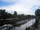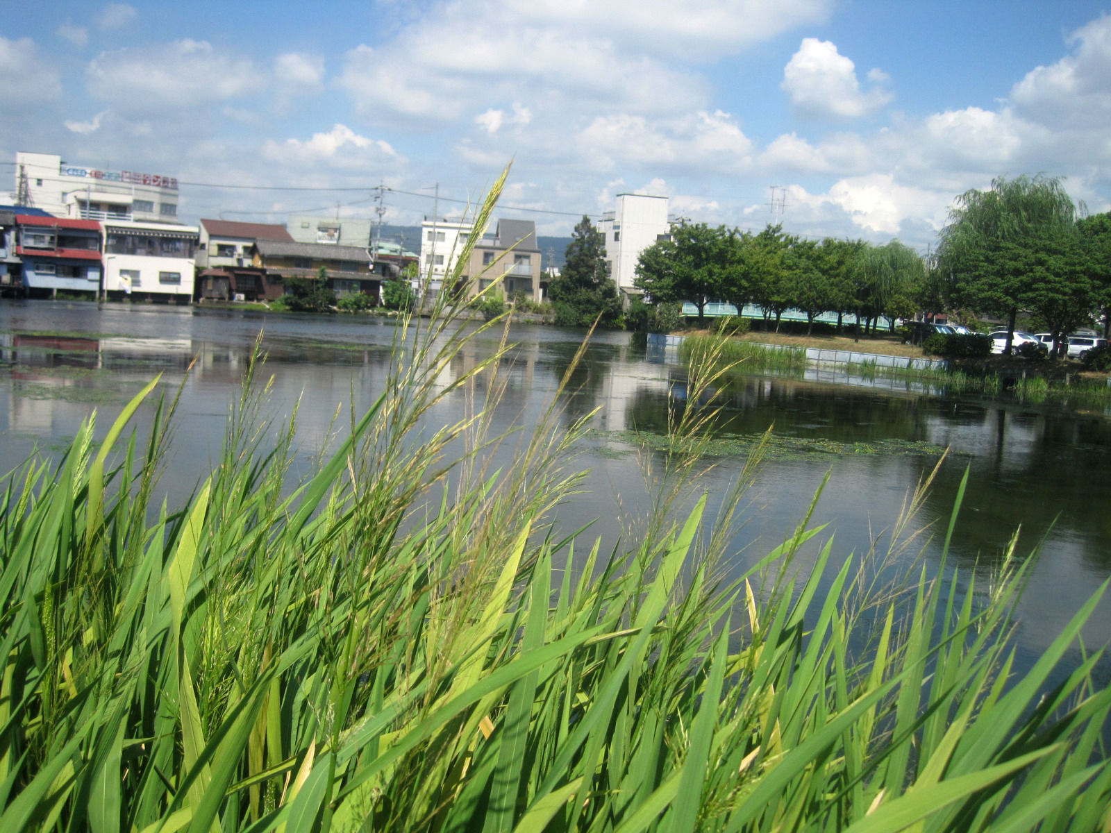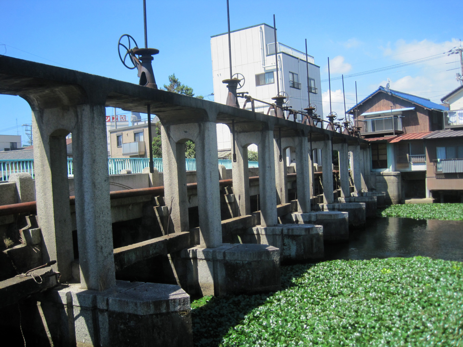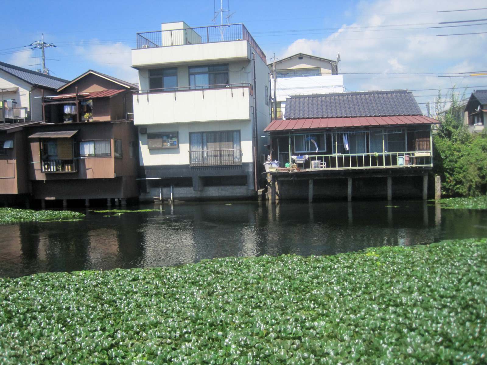 帰りに「ブラ@タケミ」! 玉島は用水路っていうか,そういったのが,縦横無尽だったり,そこここに溜まりがあったりして,支所の北側の広い溜まりを「溜川」と呼ぶようです・・で,市立玉島図書館の近くにも,合流地点で広がっているところがありました。