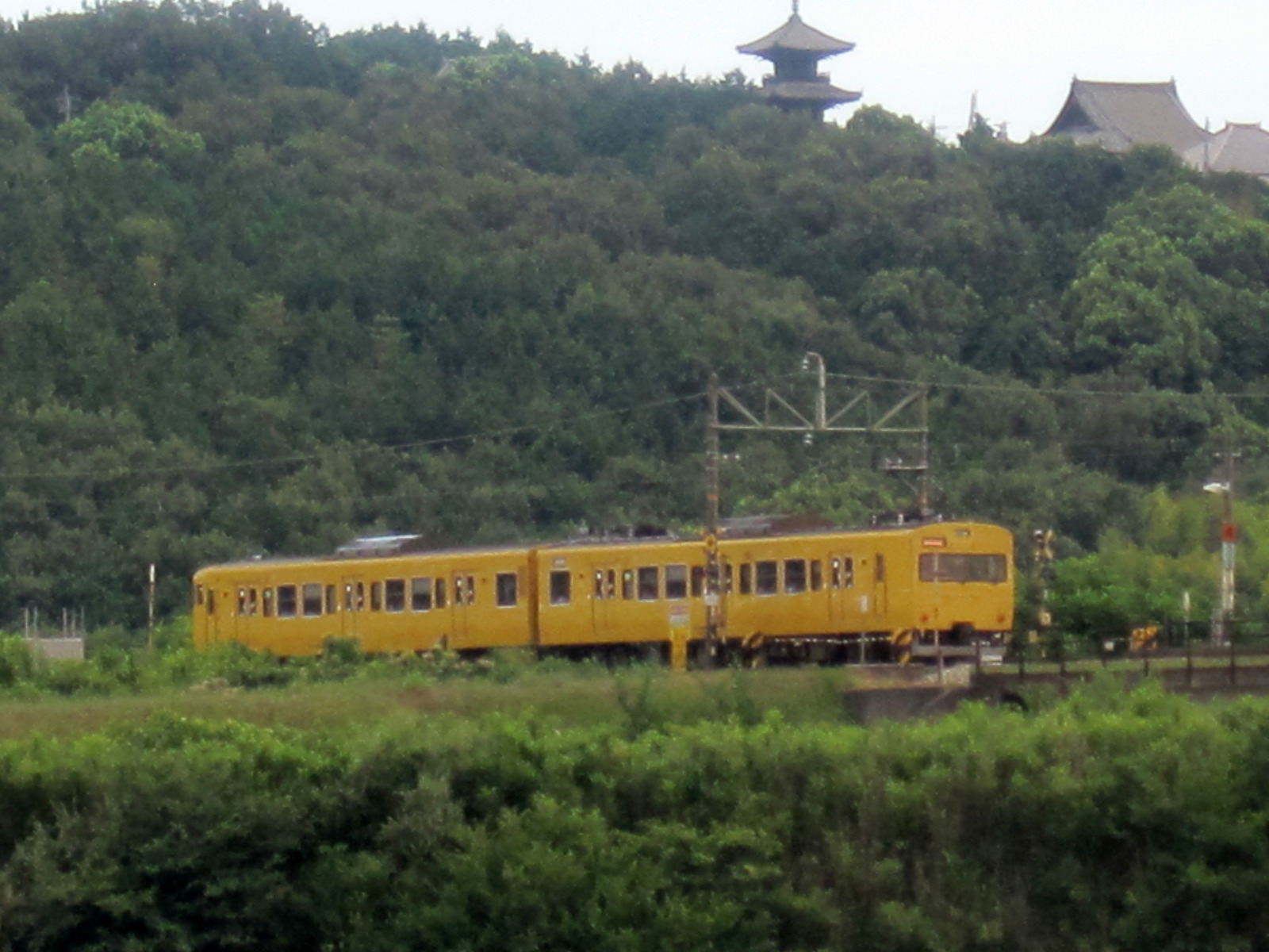 今度は,上り列車! そして山の上には,邑久町の余慶寺が見えています。