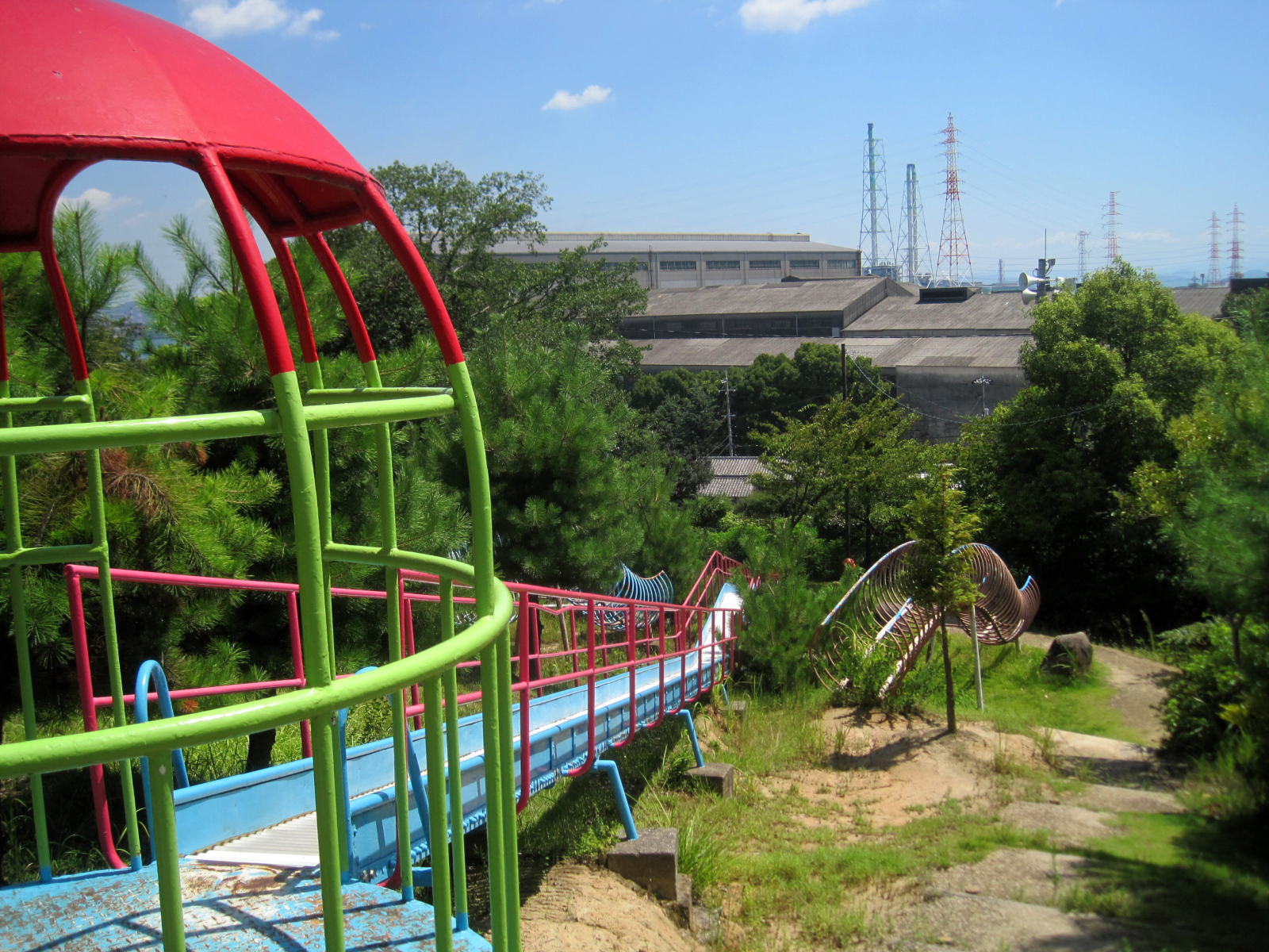 公園の遊具もちょっと錆び付いたり・・・夏草も茂っていて・・・あまり子どもたちも来ないのかな?