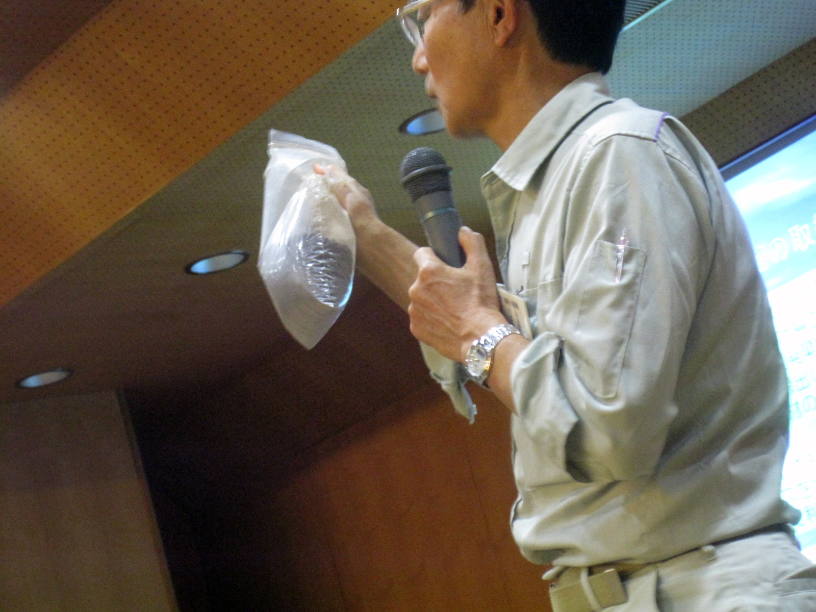 最後,投入ホッパへ投げ入れるところも,実演してもらいました。