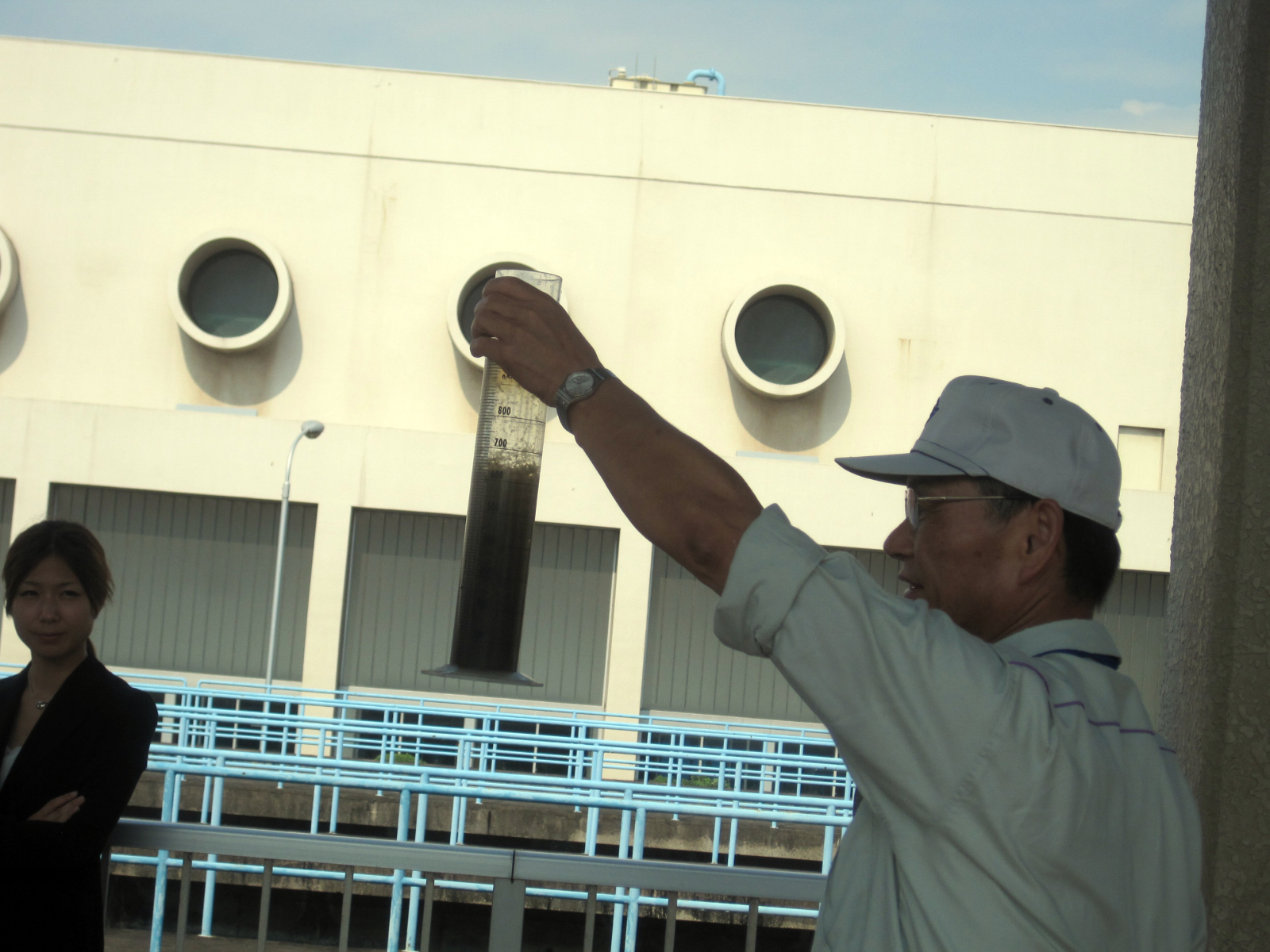 最初沈殿地は下水そのままで,色と臭を実感出来ます。