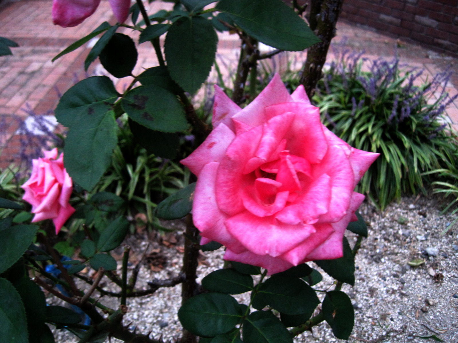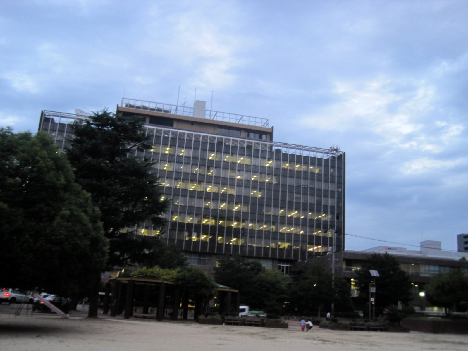 到着少し前に岡山市役所裏手の公園の薔薇〜っていうか,今,市長選の真っ最中!