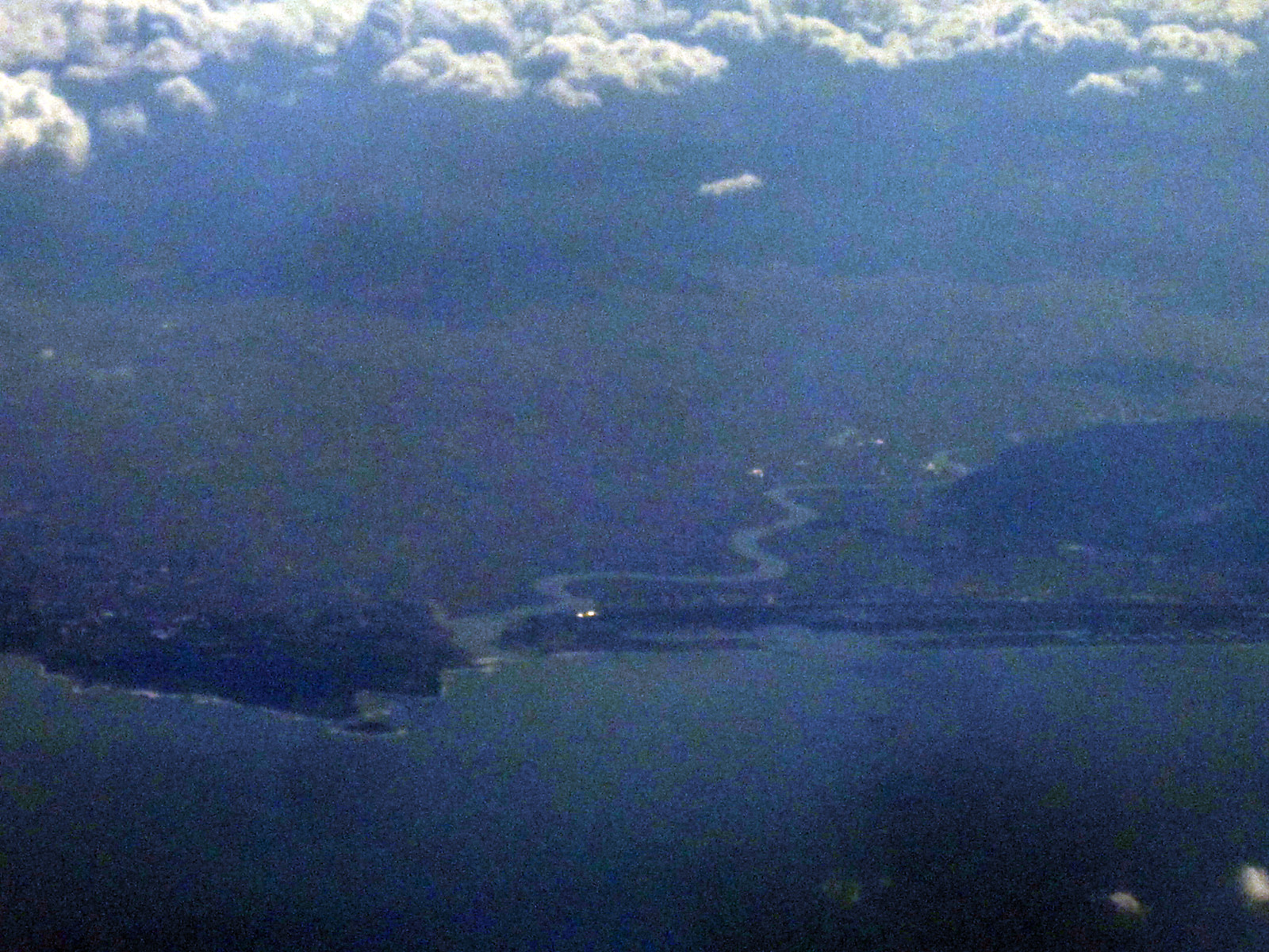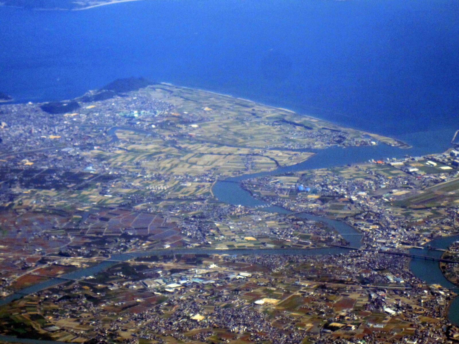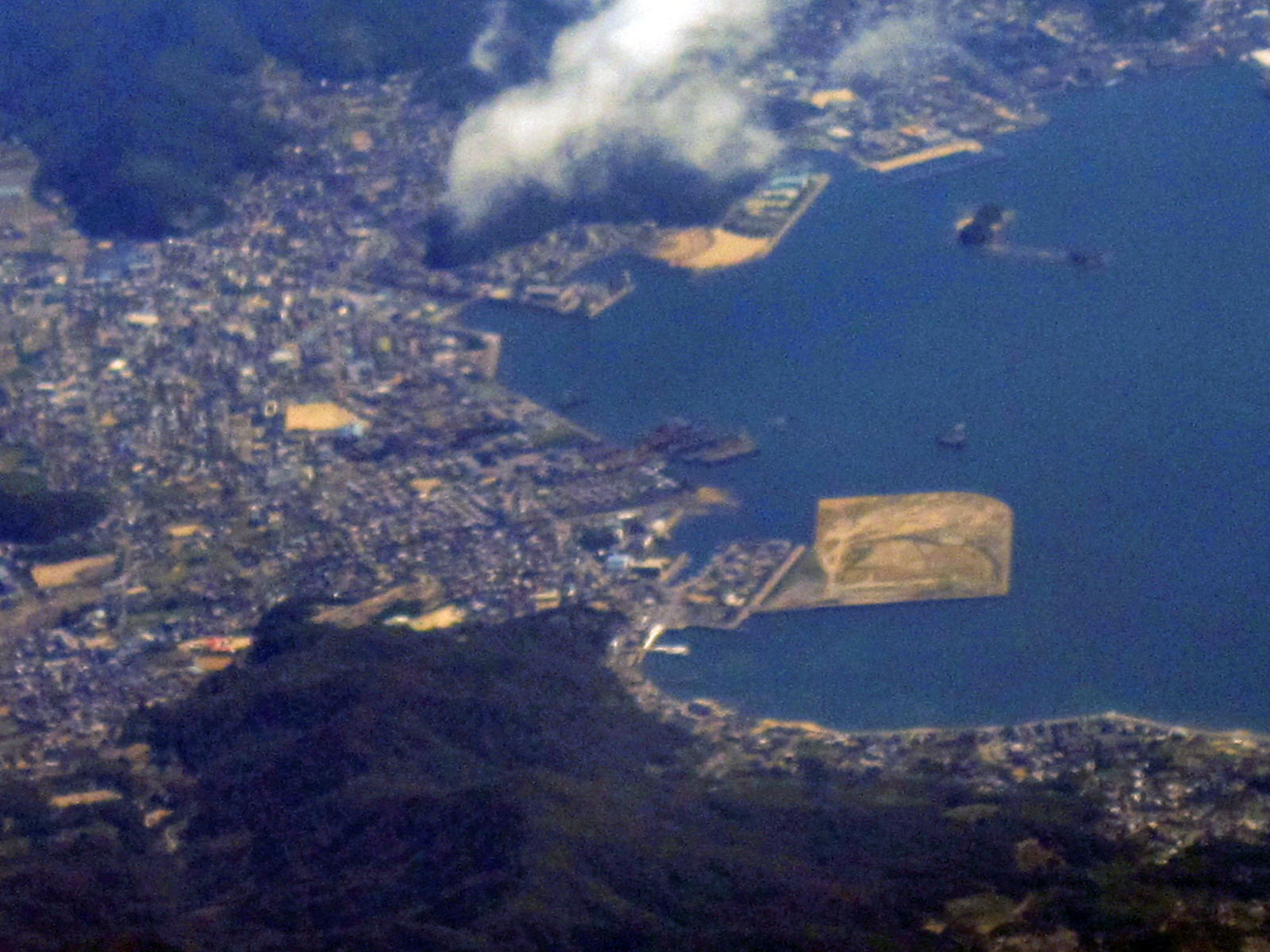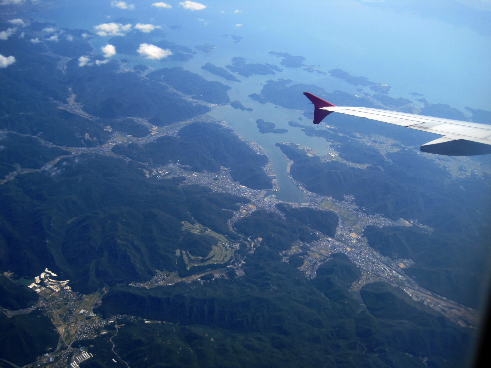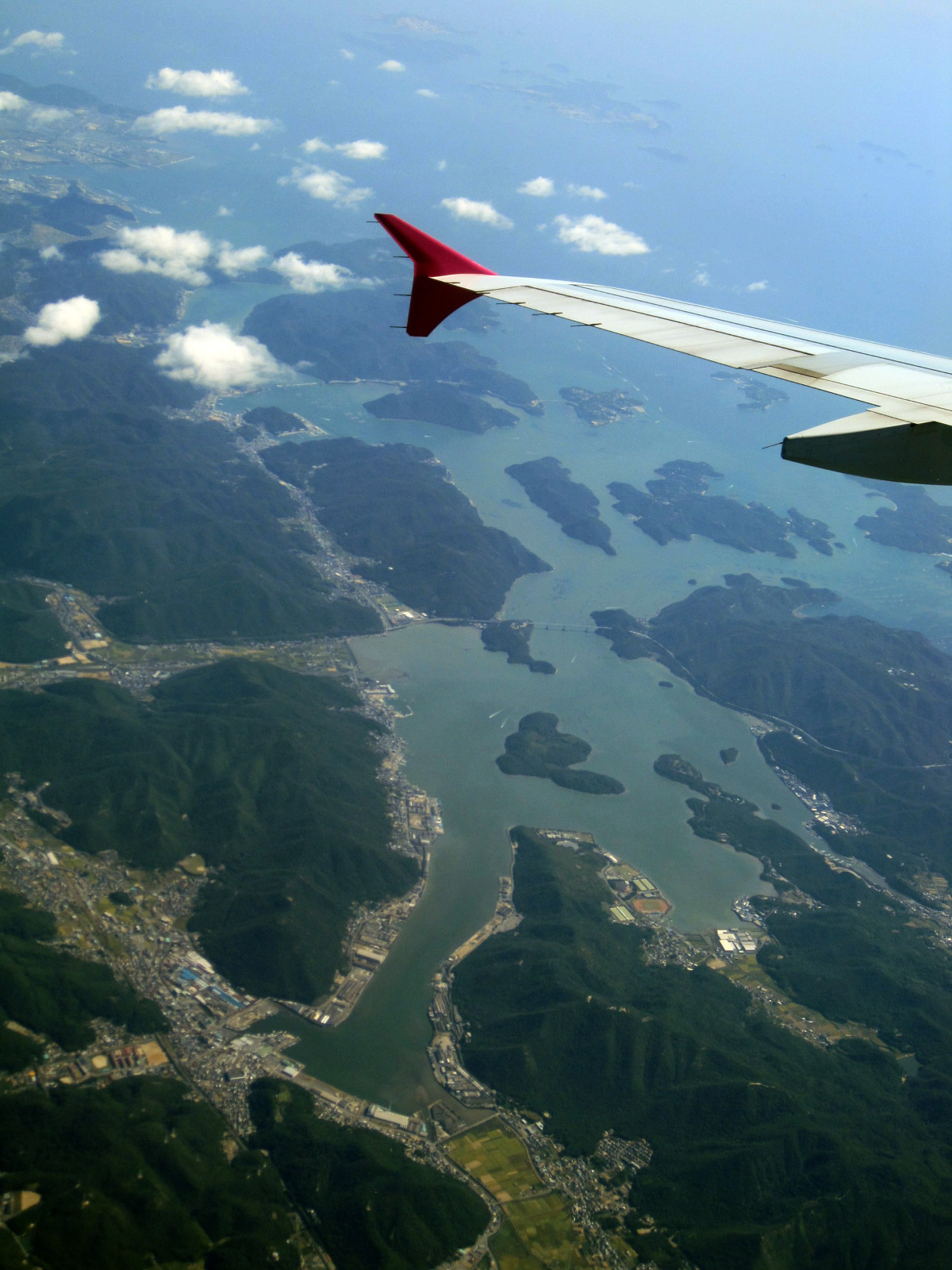 なんと新千歳から関空に飛ぶのに岡山県備前市上空:日生〜備前のブルーラインの橋も! |