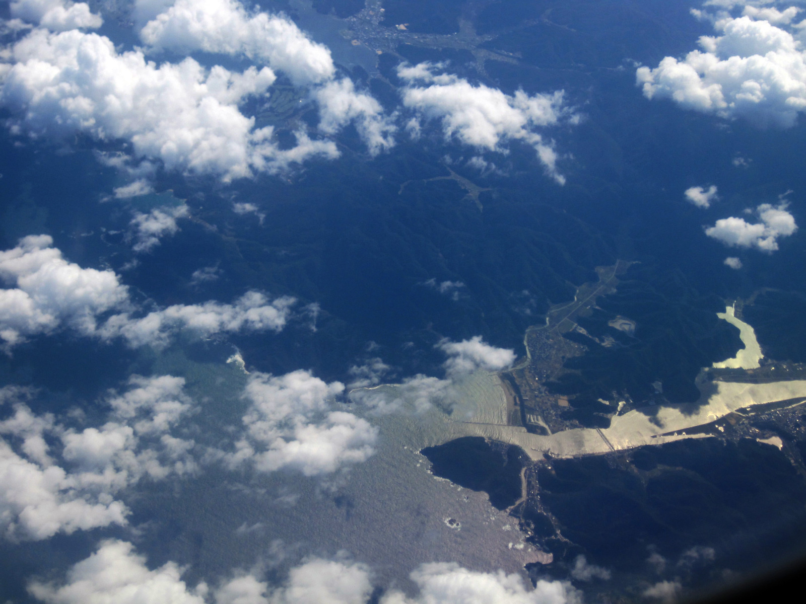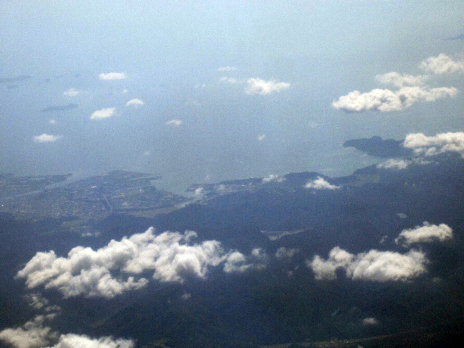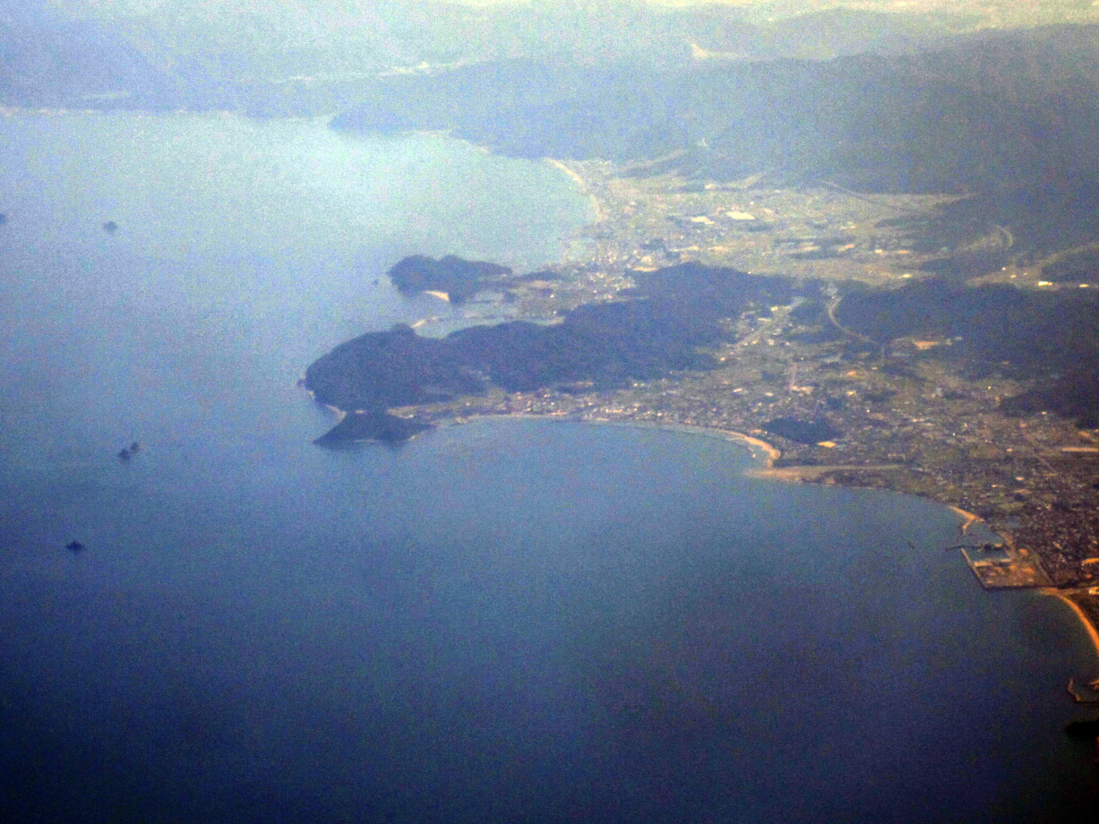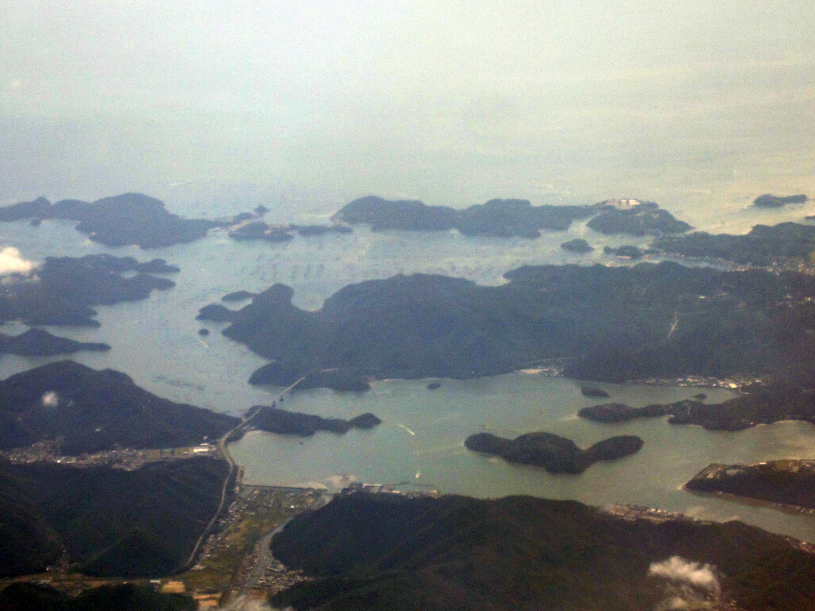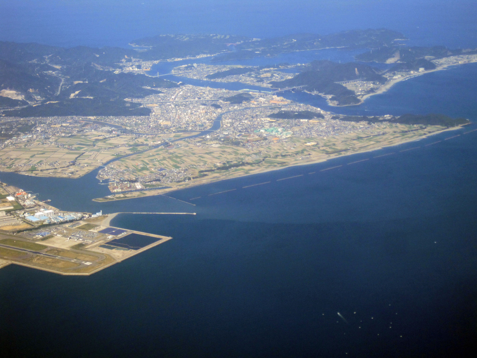 なんと新千歳から関空に飛ぶのに岡山県備前市上空:日生〜備前のブルーラインの橋も! |