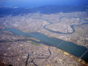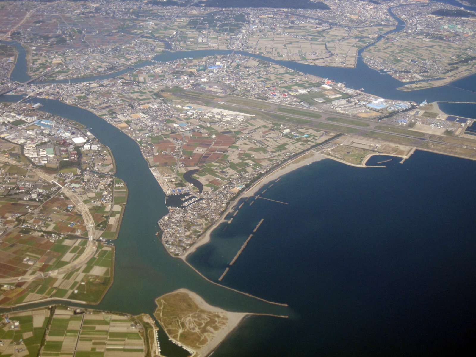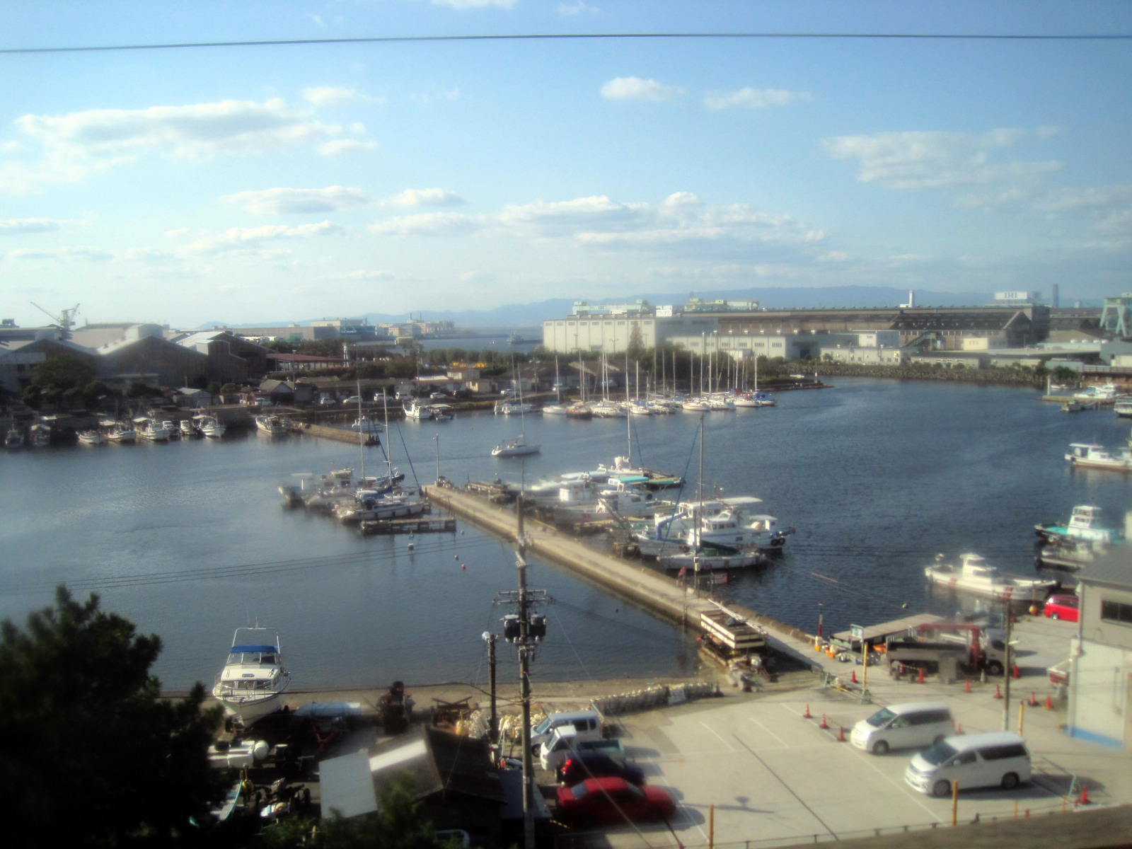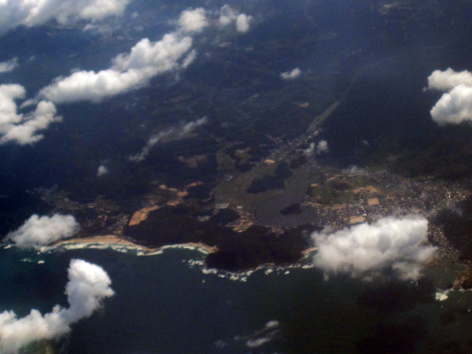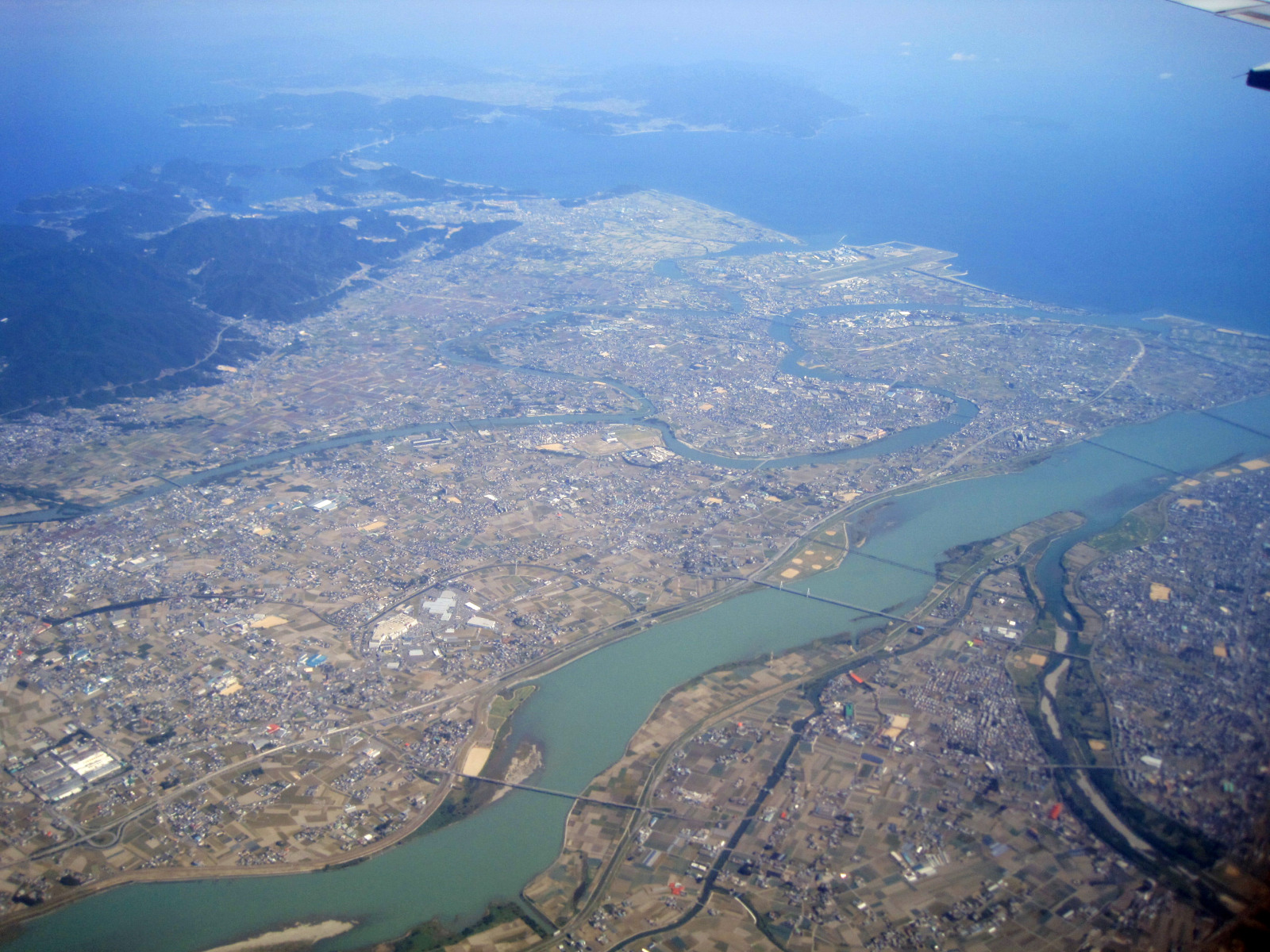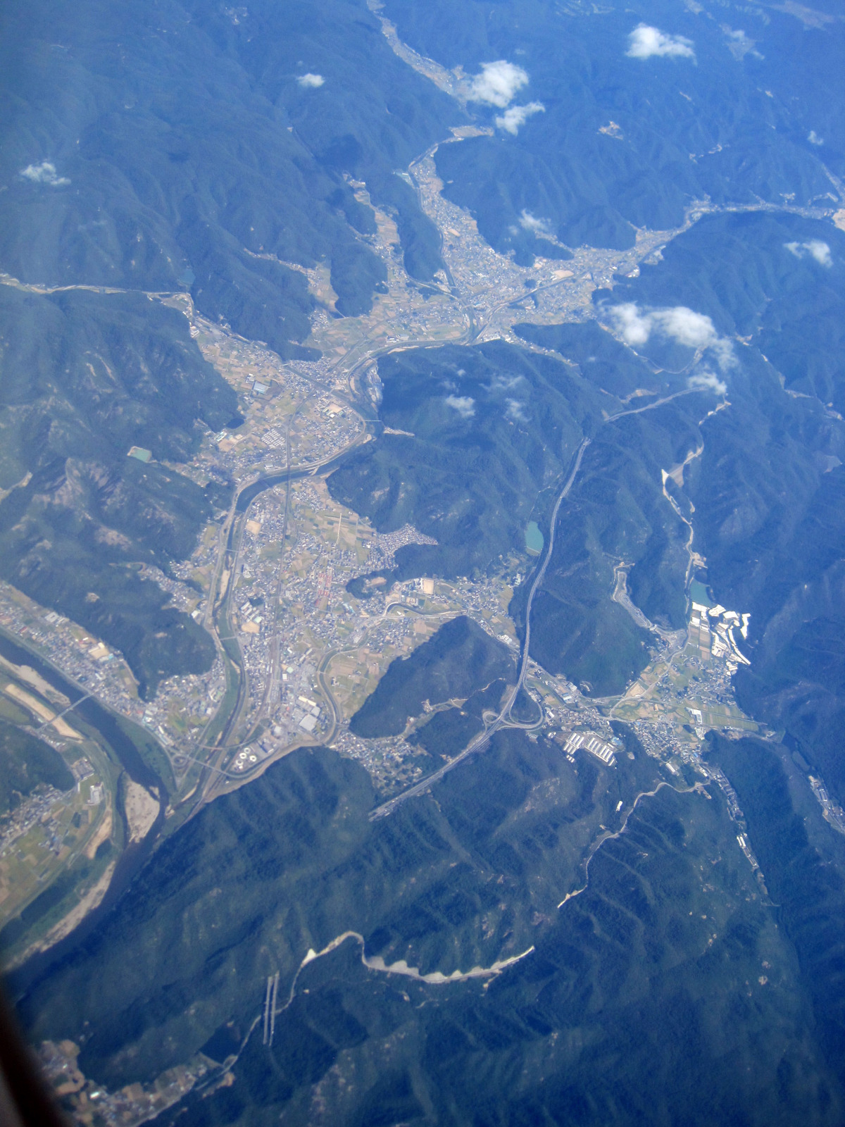 なんと新千歳から関空に飛ぶのに岡山県備前市上空:日生〜備前のブルーラインの橋も! |