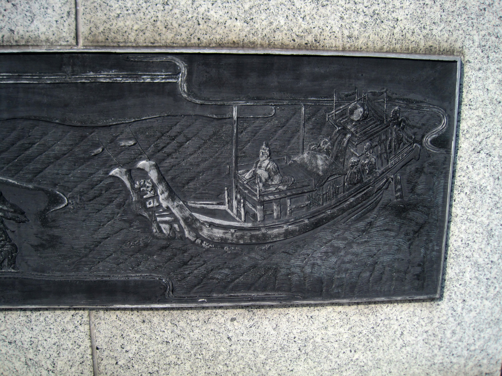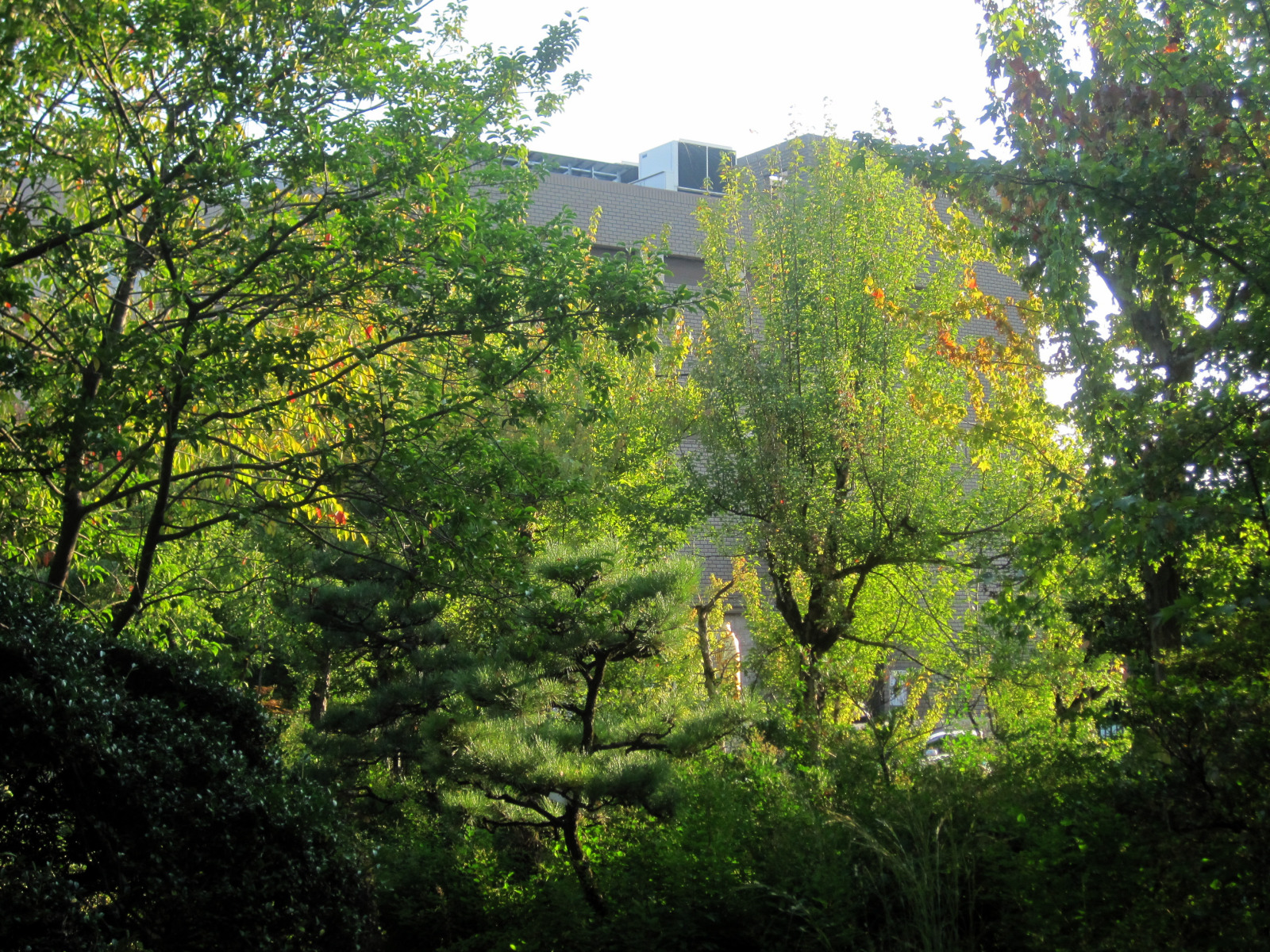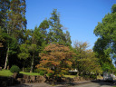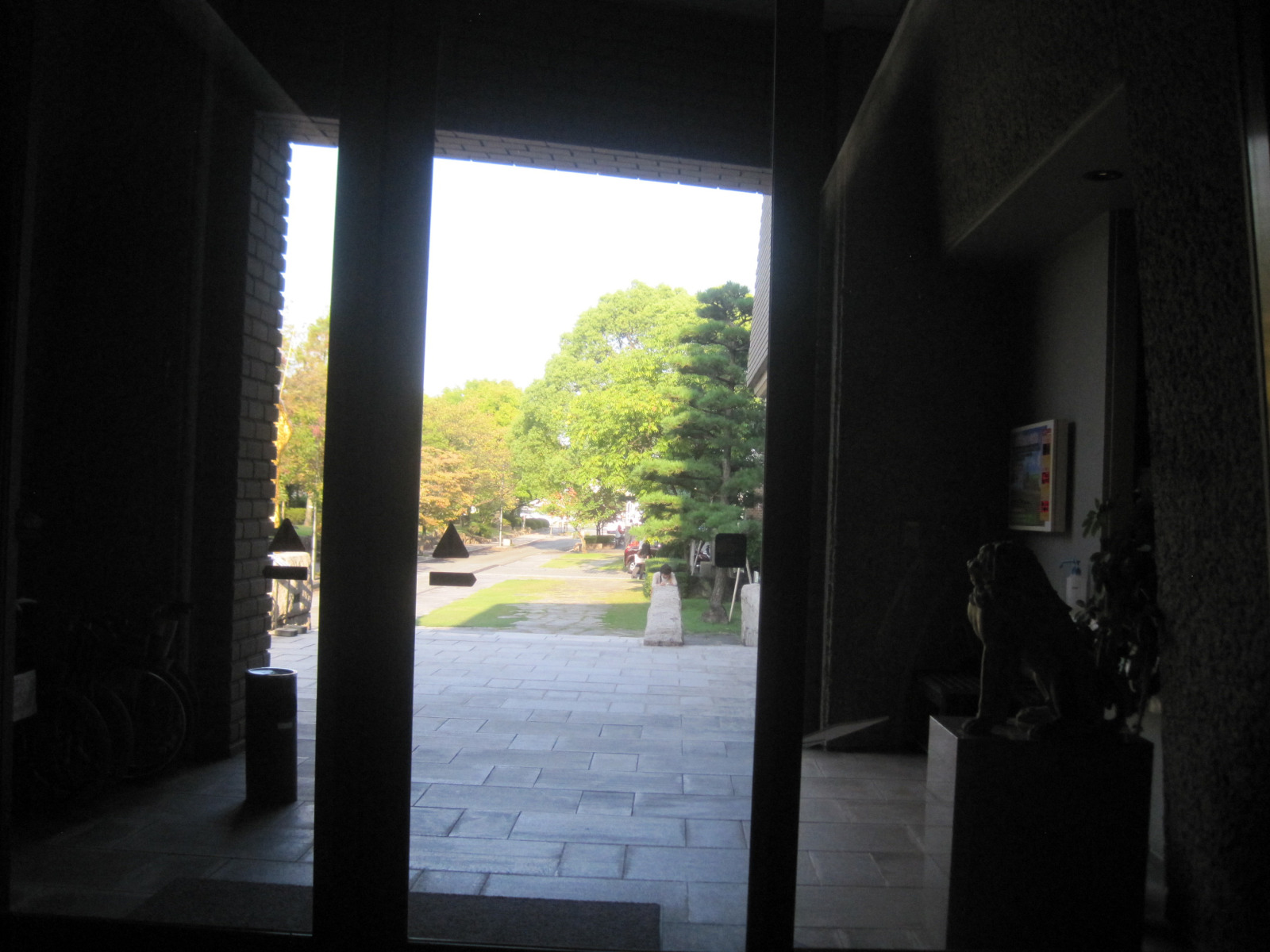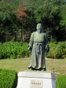 市役所があって,向かいには,「田中苑」という庭園があり,彫像が並んでいます。