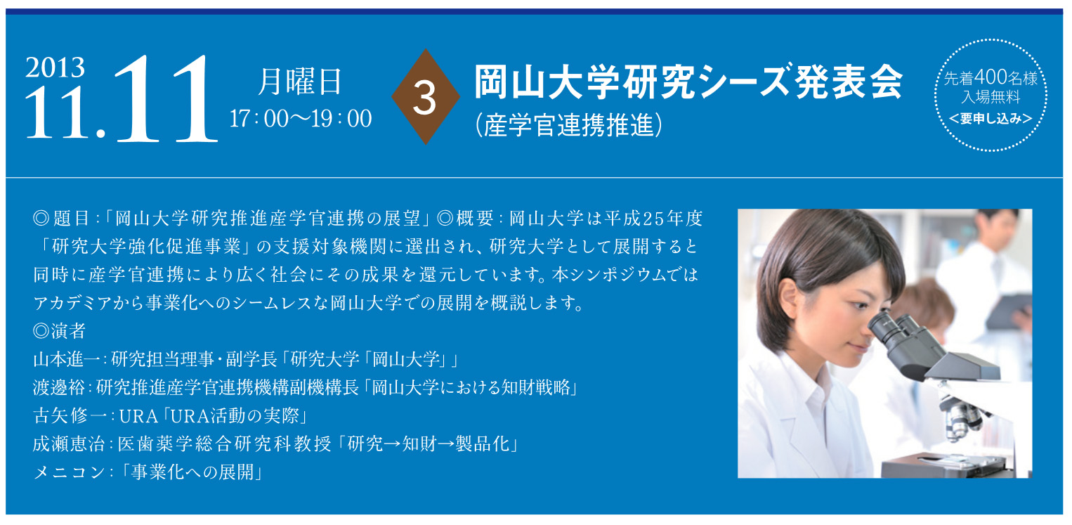 川崎医科大学の産学官連携窓口担当副学長補佐として,本日のイベントに参加しました。