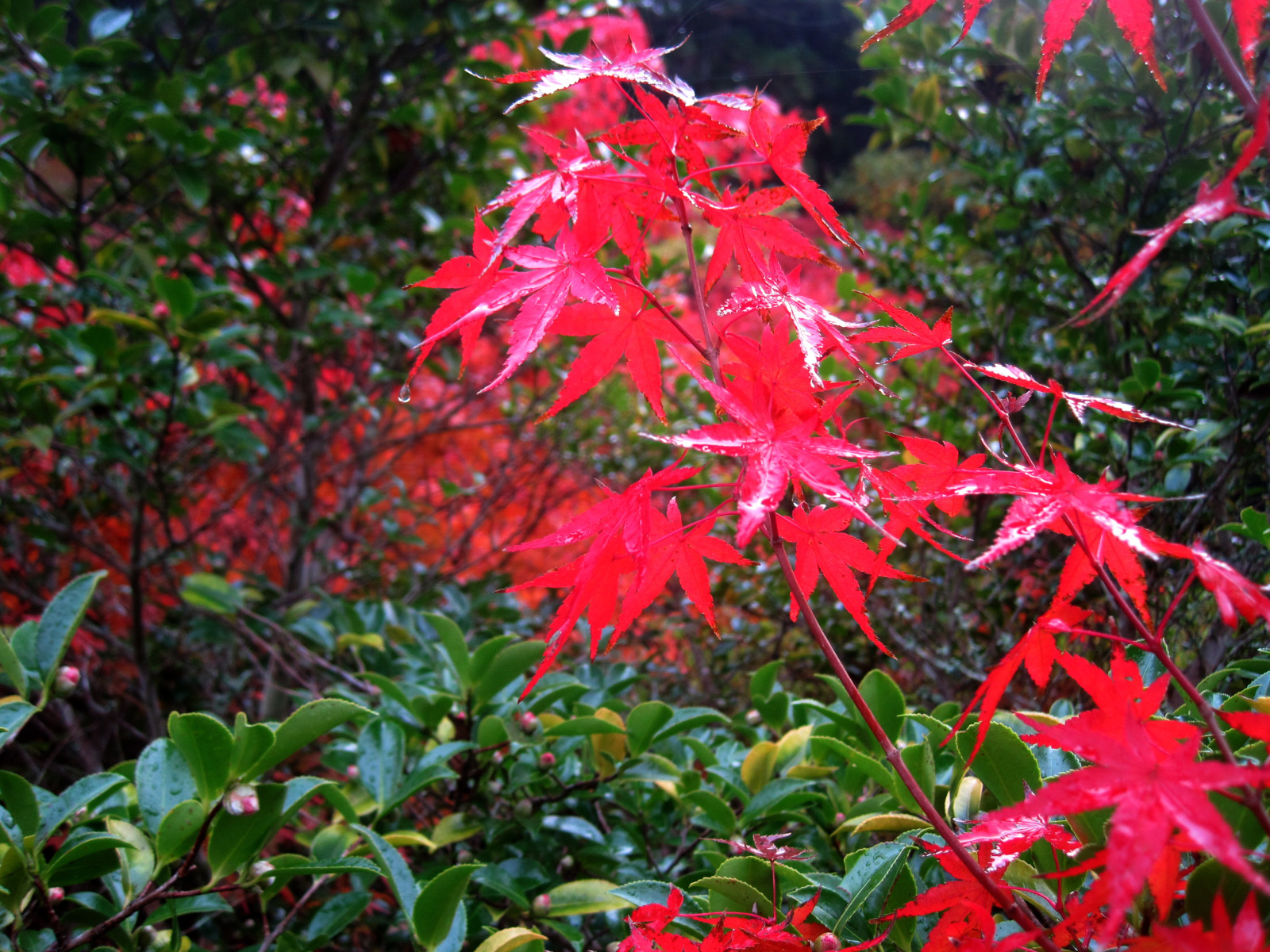 色付いた葉に残る雨の色合いもまた素晴らしい!
