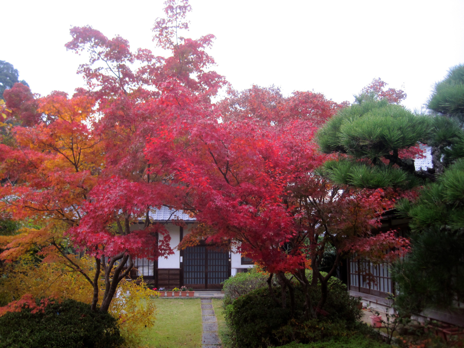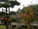 このお寺のお子様お二人・・小学生くらいのお嬢さんたち・・姉妹でしょうね・・・が,境内の木々のお手入れをされていました。