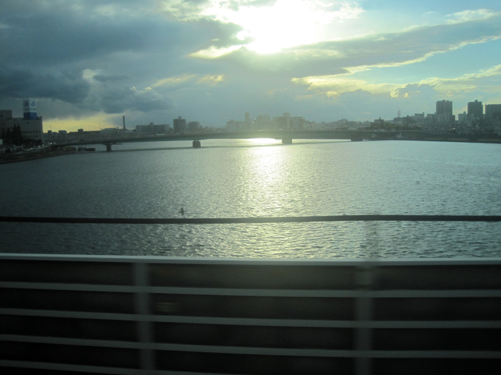OAPビルは旧淀川沿いで,,大阪市立大のボート部の拠点がありますが(対岸)練習中でした。見えますか・???