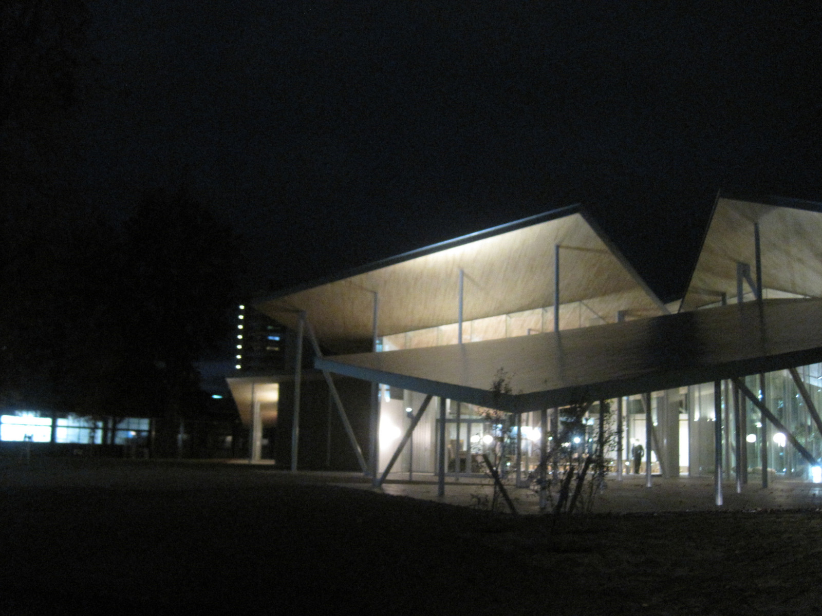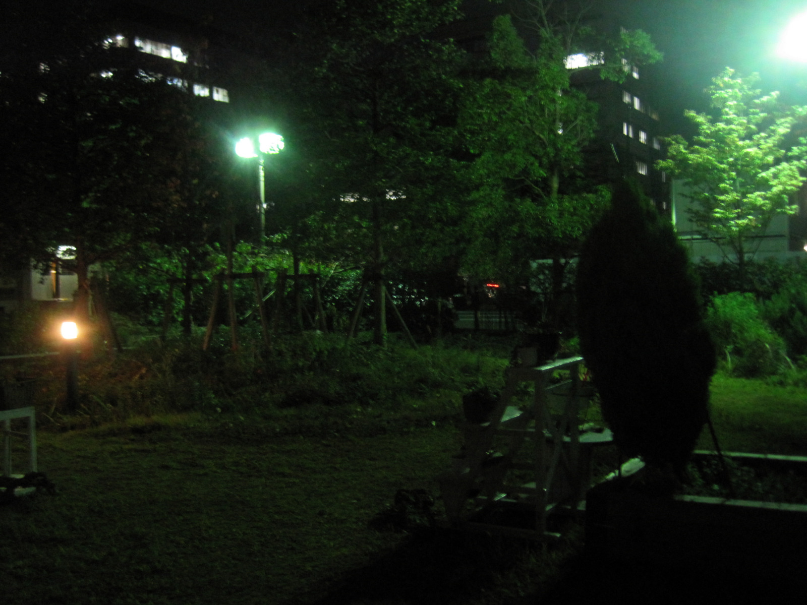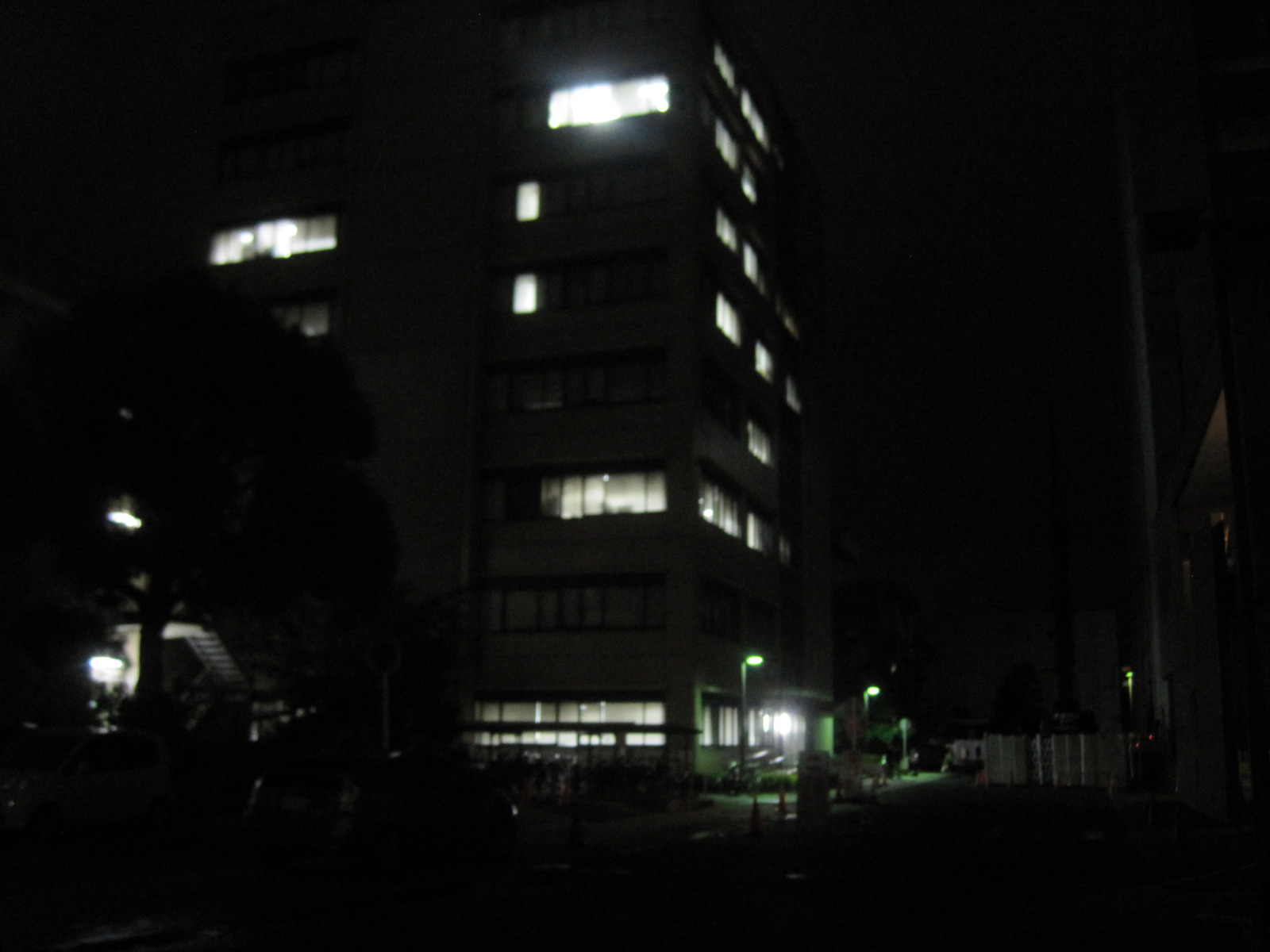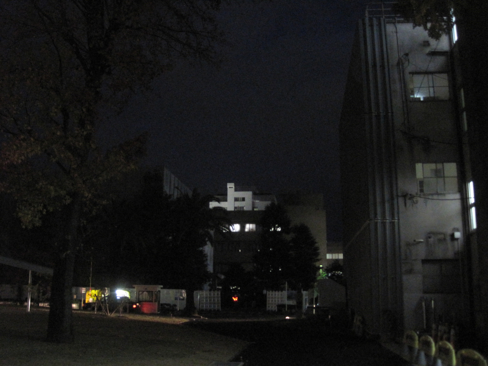 そして,もう暗くなった鹿田キャンパス・・・・Junko Fukutake Hallは灯がともっていました。