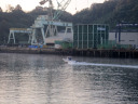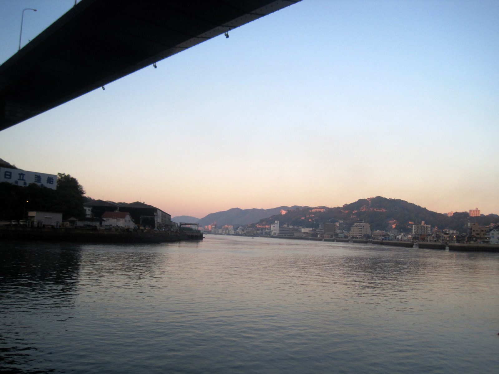 尾道水道〜まずは,しまなみ海道の橋脚(左は元々の因島大橋)の真下にて
