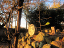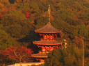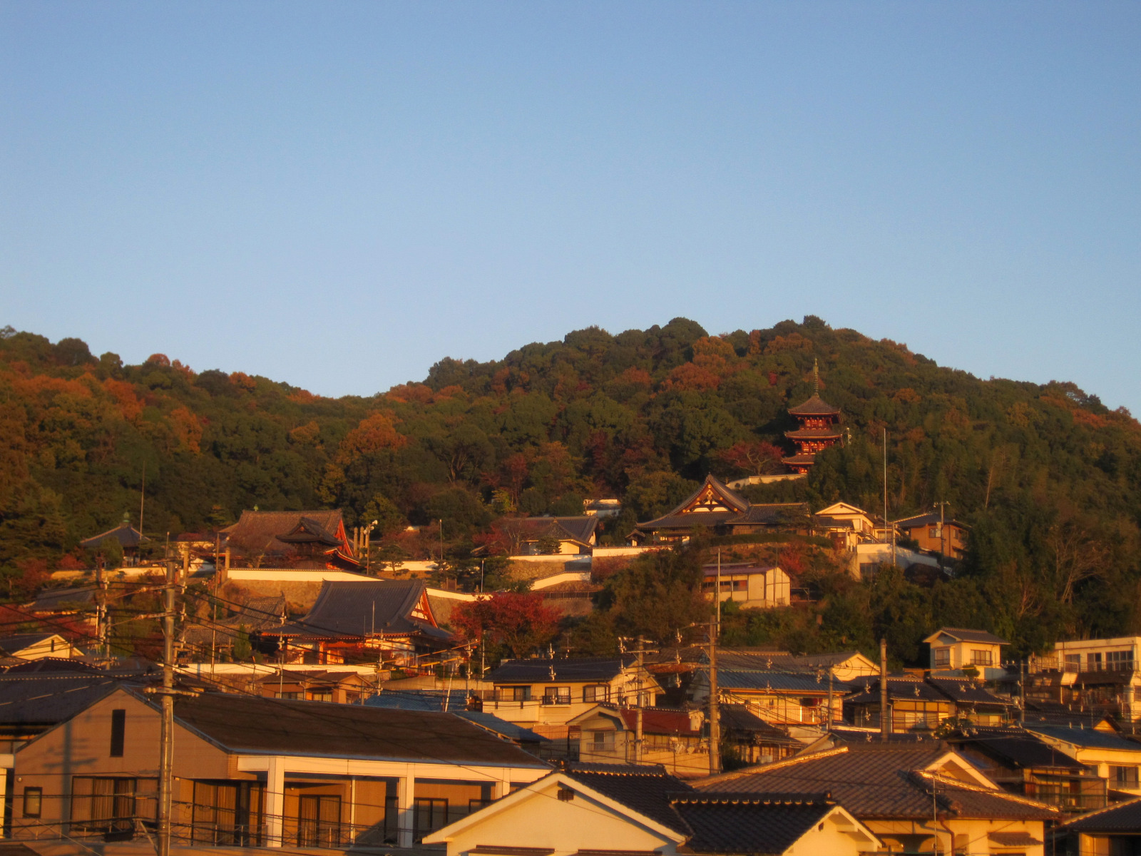 裏手に回ると・・・千光寺やロープウェイ,そして北側の西國寺さんの三重塔などが朝日に照らされているのがくっきりと・・