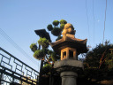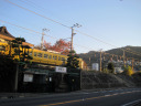 こちらも参道は,JRや2号線を抜けて,商店街の方まで・・・公孫樹のような色の上り普通列車が通過して行きました!