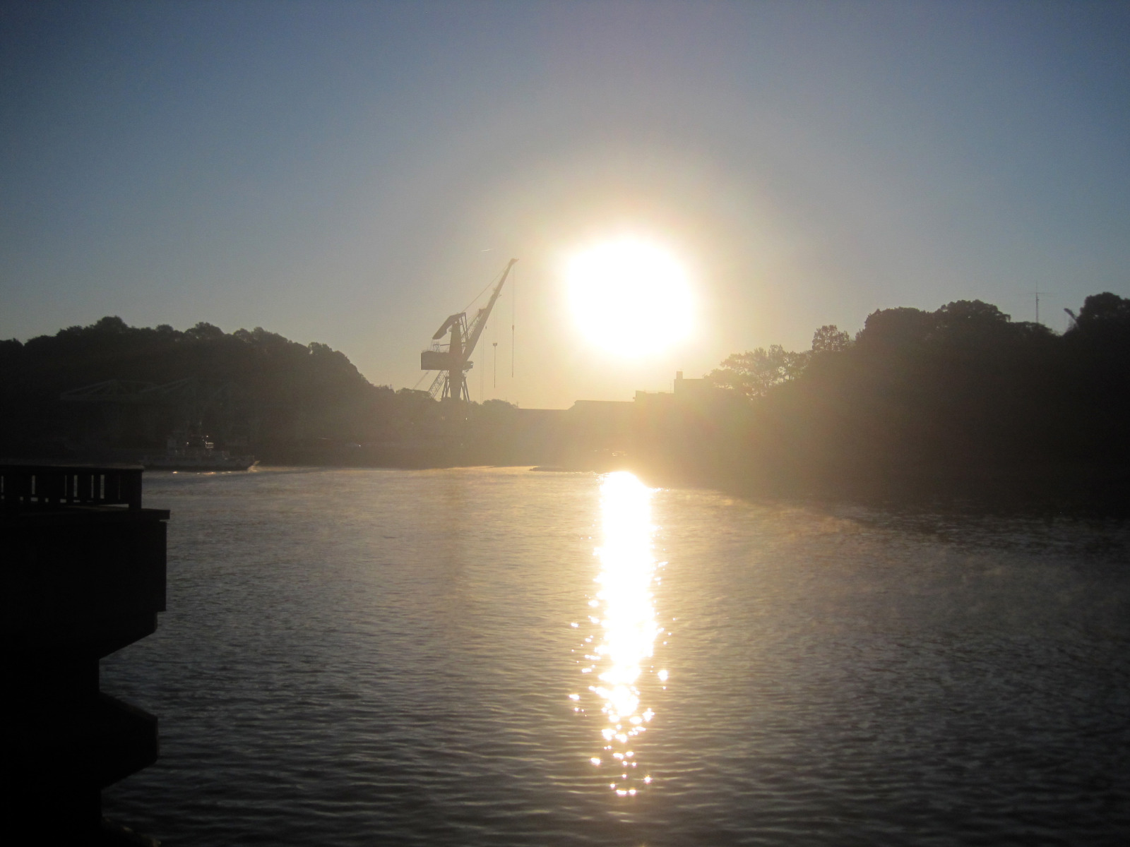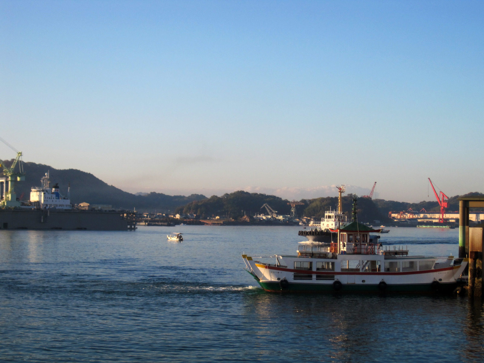 さぁて〜尾道駅前へ・・だいぶ,朝日は昇りました。