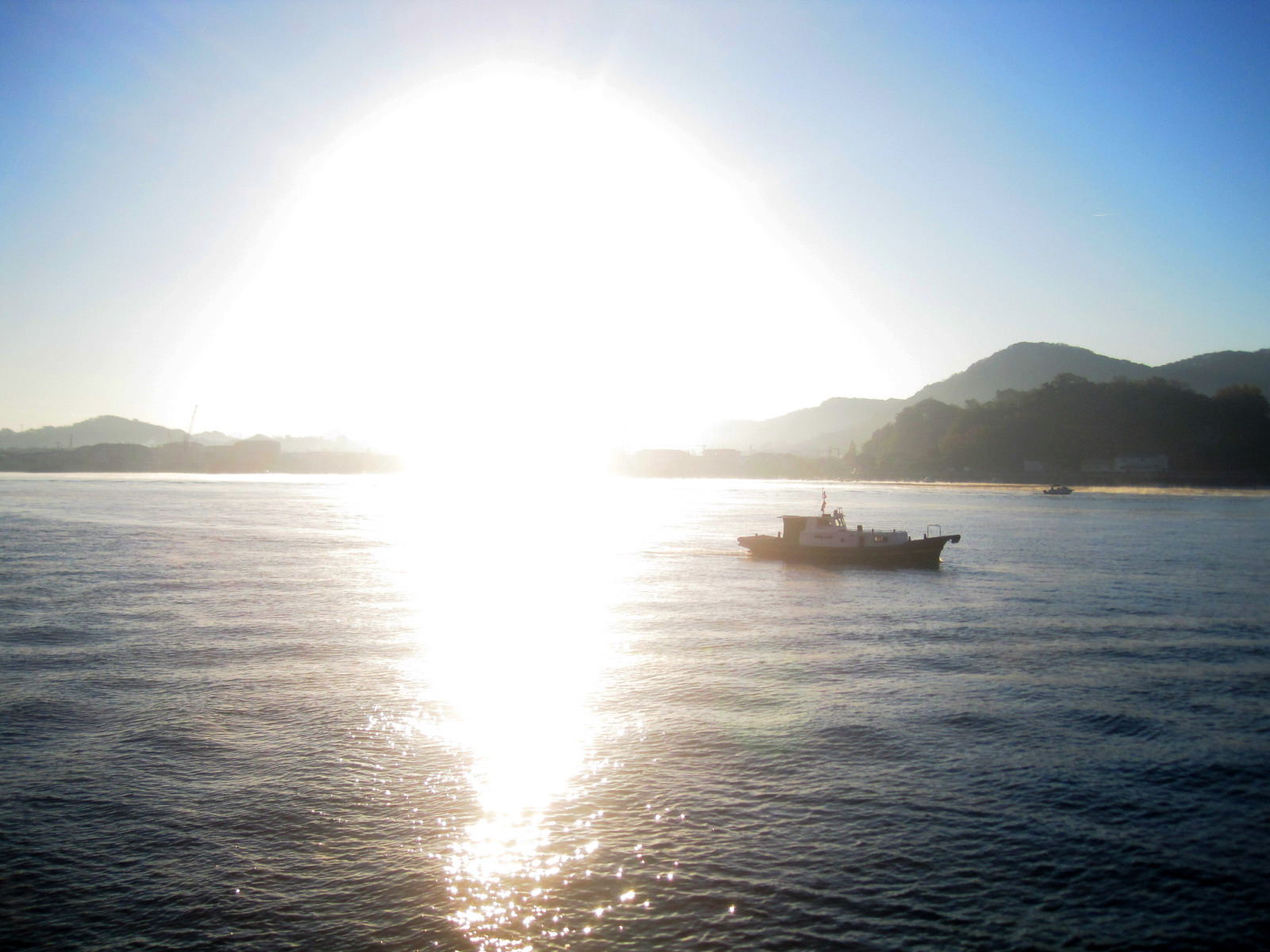 そこからもう少し西へ・・・狭い水道ですよね。そして,日が昇ってくると,空も海も真っ青