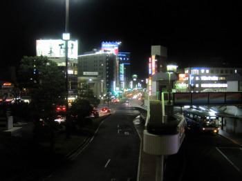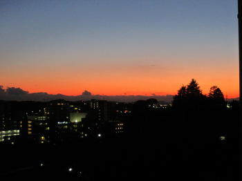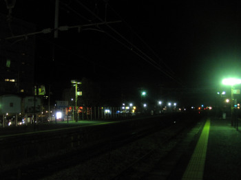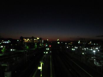 | ↑ 大学の窓からの黄昏 | ↑ 中庄駅まえから | ↑ もう夕闇のホーム |