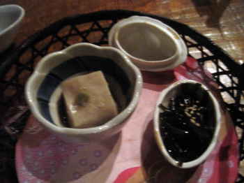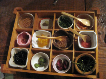 | 最後のお茶漬けにも,これだけ具を揃えてもらっているってスゴイ! 最後のアイスクリームも絶品でした。 |