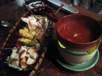 | チーズフォンデュ的な海老天のチリソース的味わい・・とってもよかった! | ||