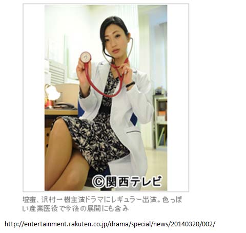 図は,TVドラマ「ブラック・プレジデント」で壇蜜さんが演じた産業医である。実際のこのドラマの企業は従業員数100人であり,有害業務には50人が従事していた(と仮定する)。この場合の壇蜜さん演じる産業医は以下のどの範疇に当てはまるか。