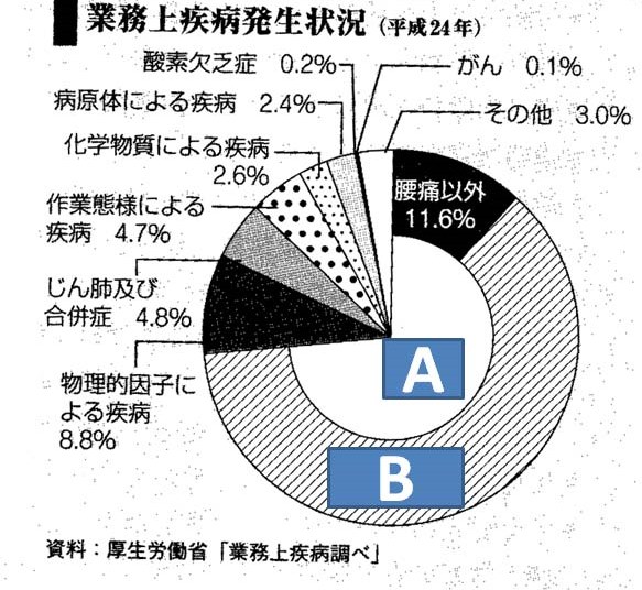 c. A:作業態様による疾病,B:災害性腰痛