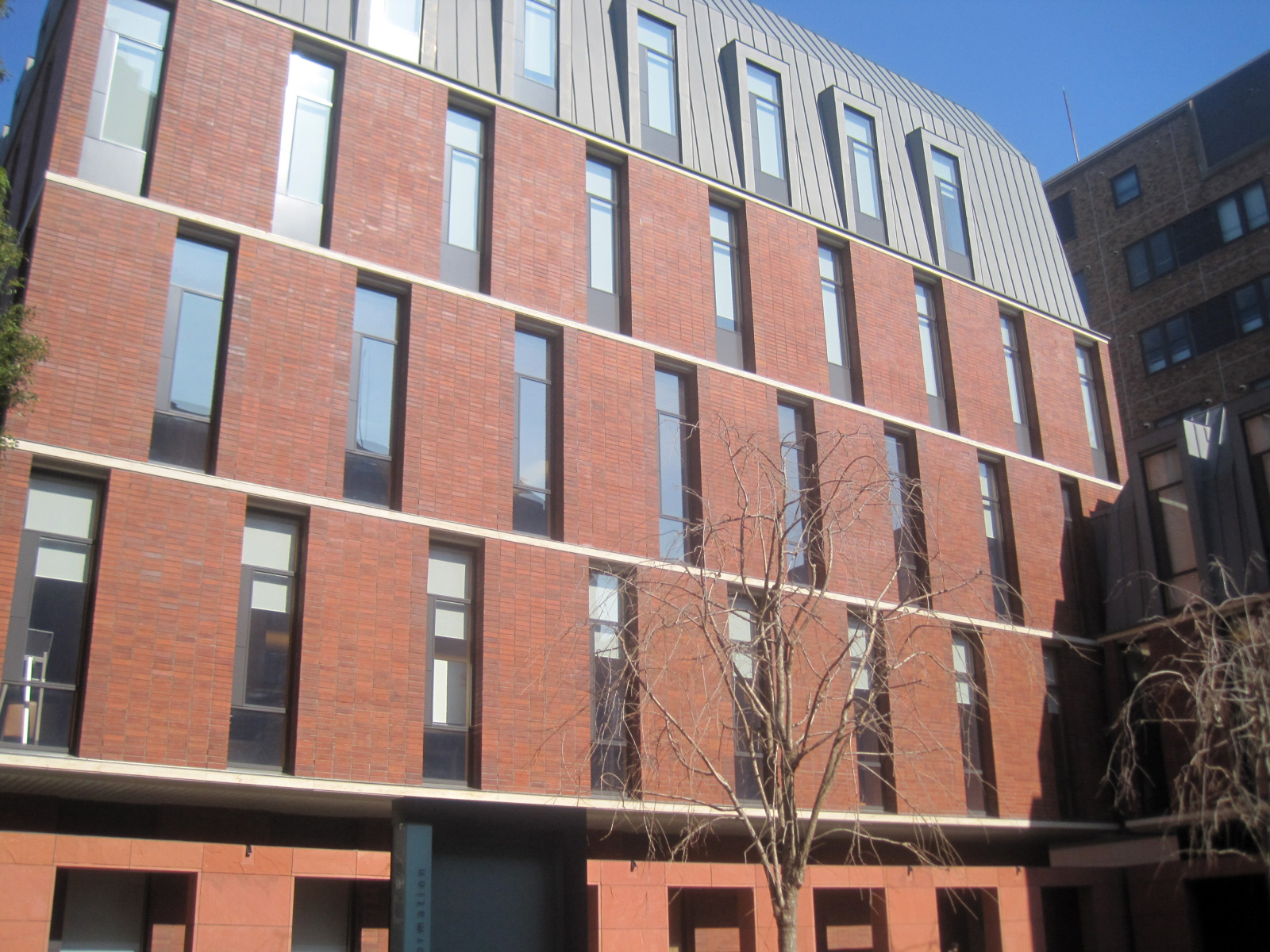 工事中だったところに,新しい建物があり・・・そこにも残雪!