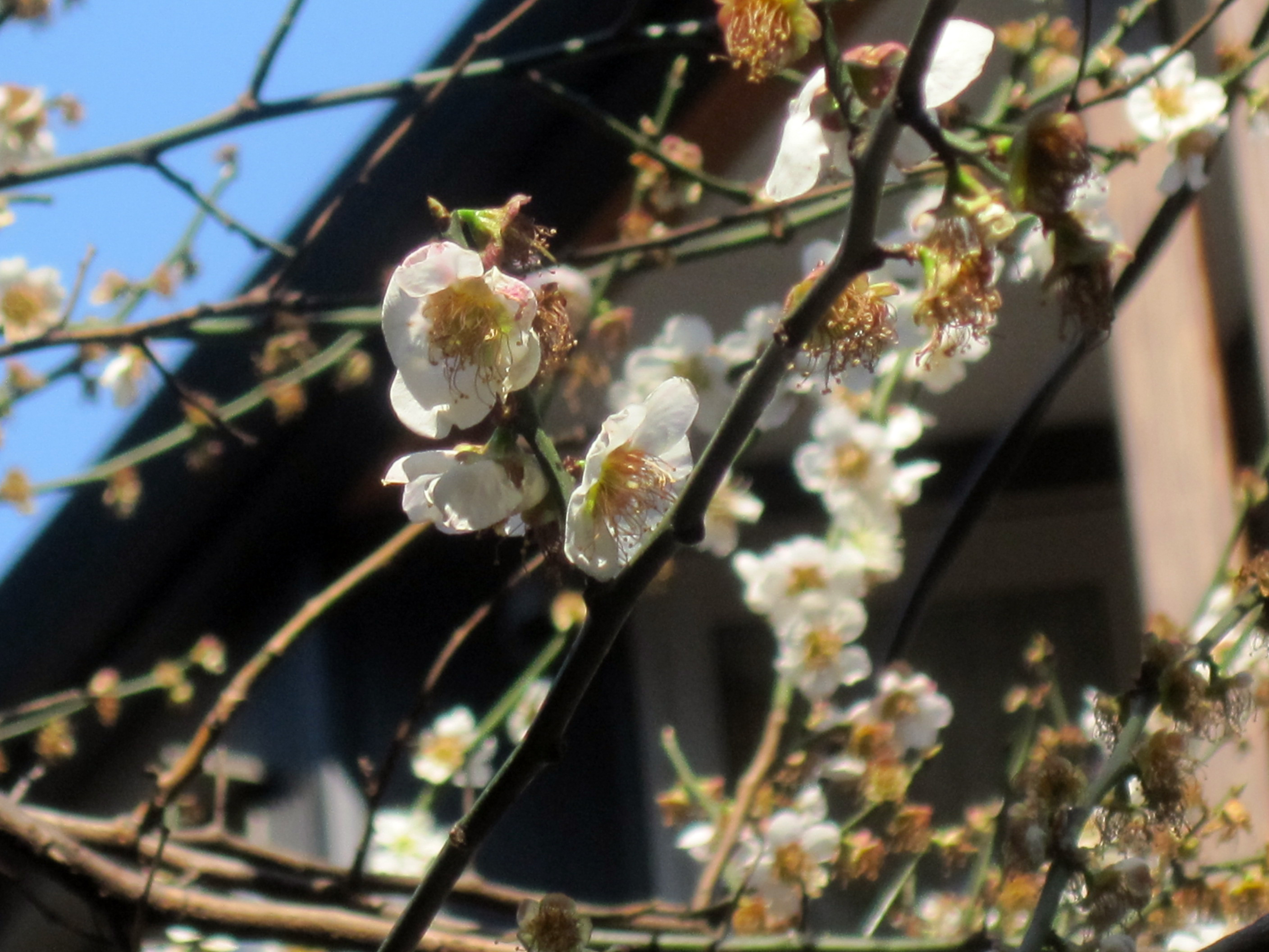「湯島の白梅」ではないですが・・まだ少し梅の花が残っています。
